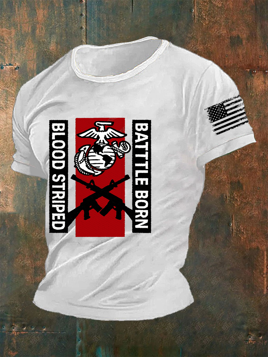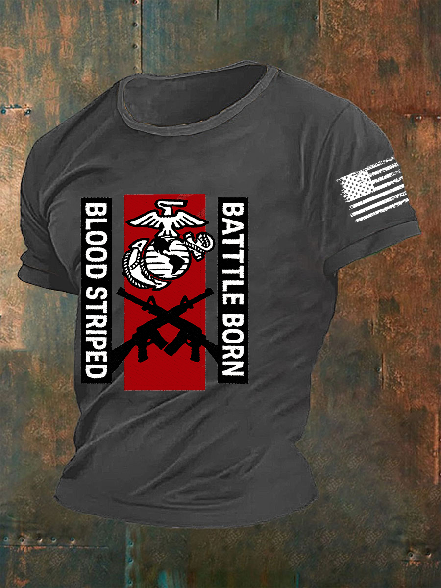Men'sBlood Striped Battle Born Short-sleeved T-shirt
