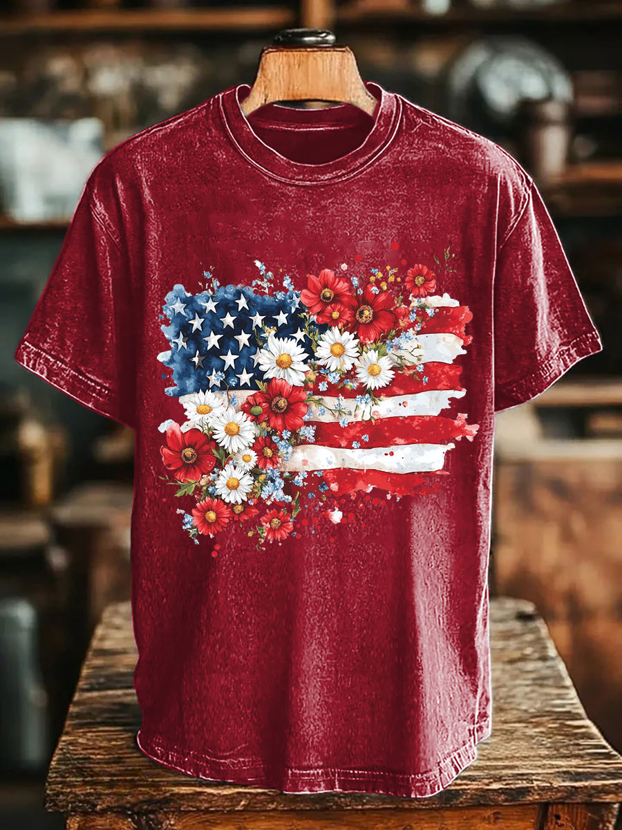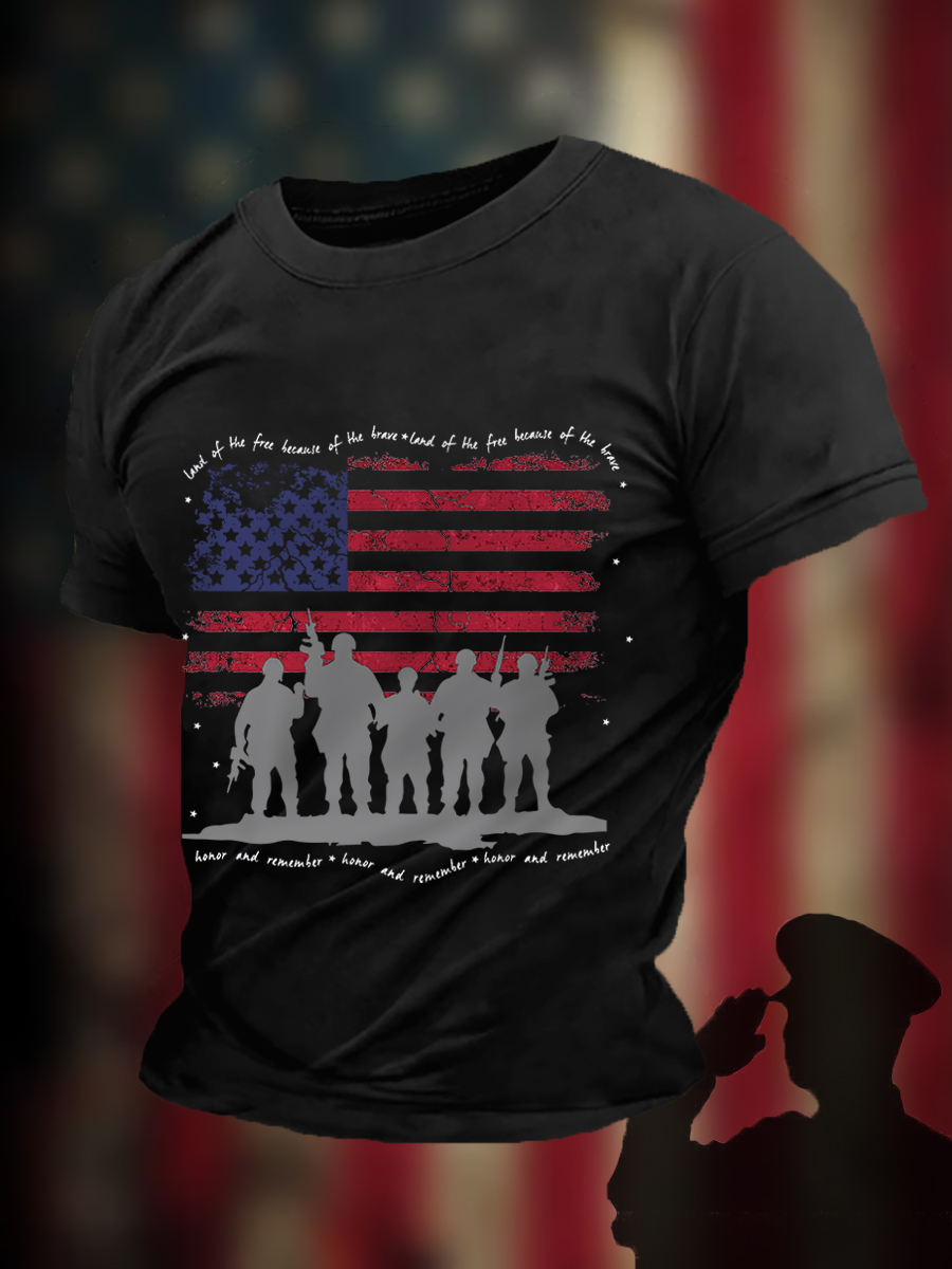 Men's Memorial Day Remeber&Honor Flag Printed T-shirt