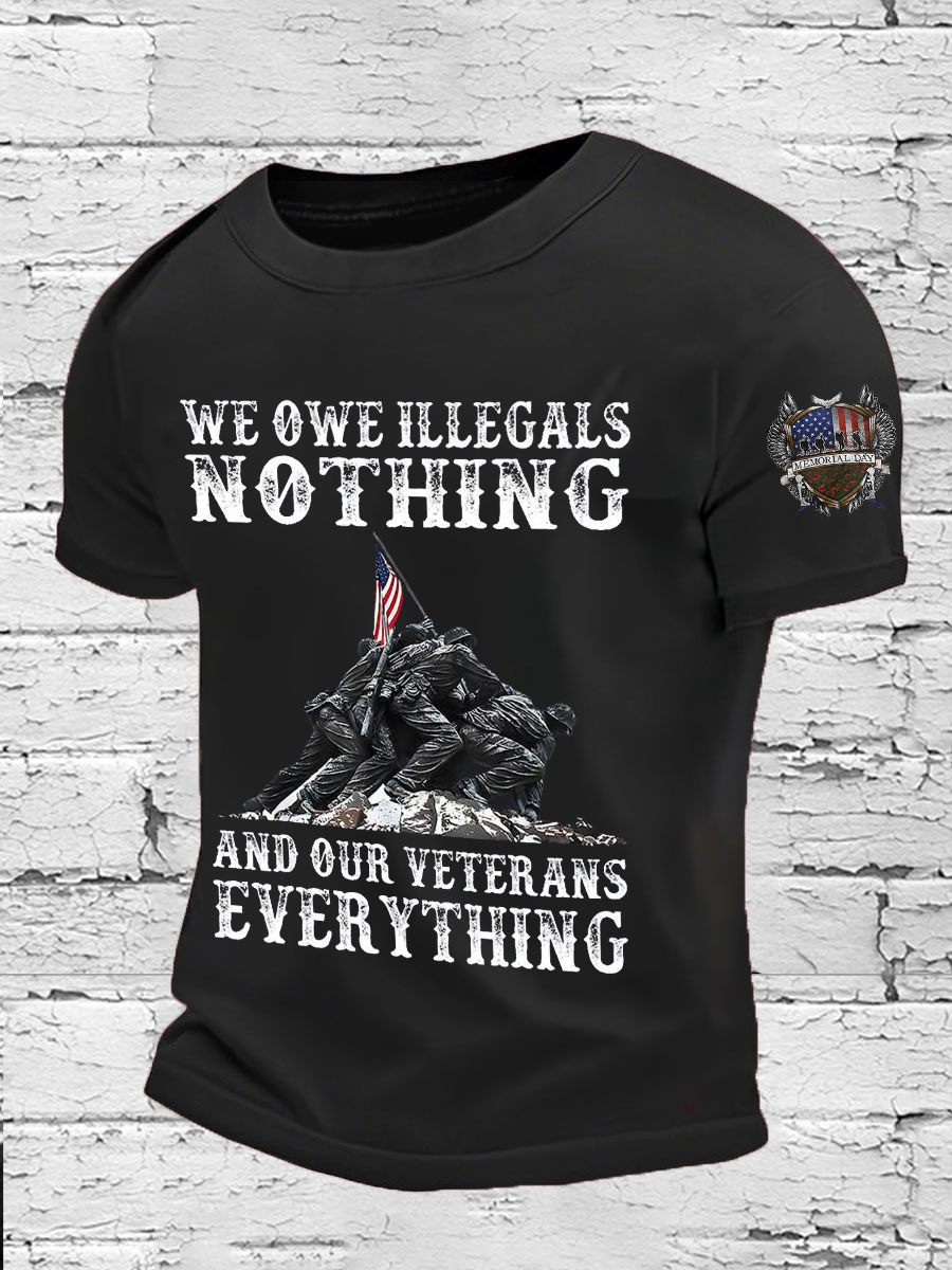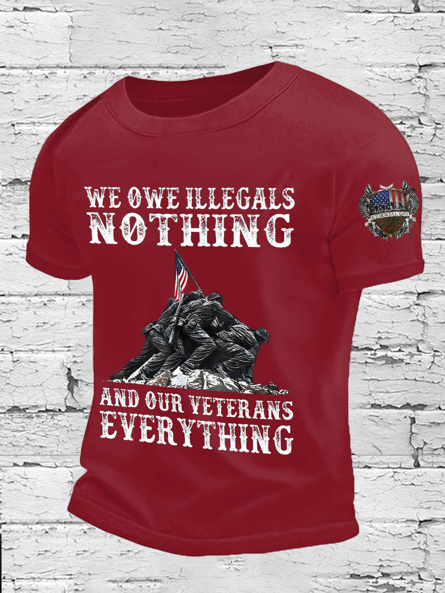 Men's Memorial Day We Owe Our Veterans Everything Honor&Remember Printed T-shirt