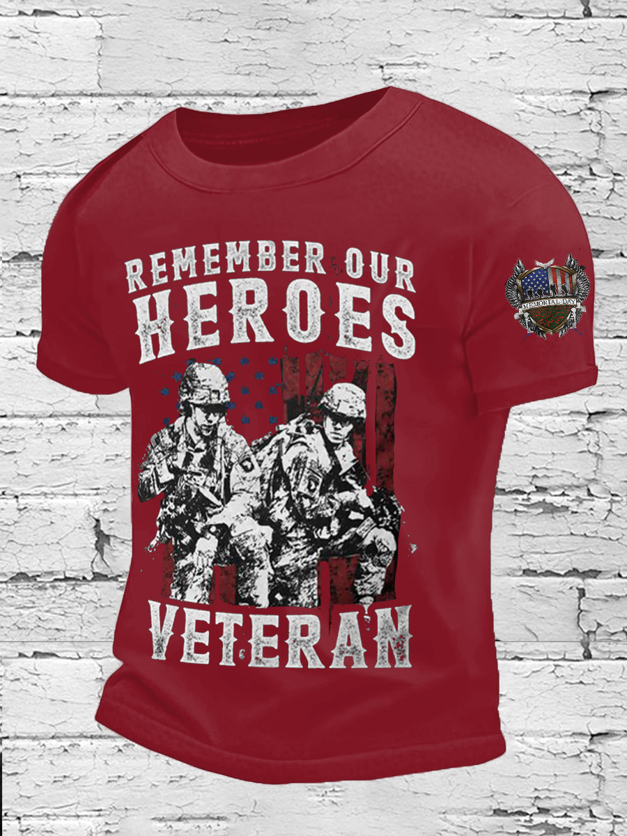 Men's Memorial Day Veteran Remember Our Heros Printed T-shirt