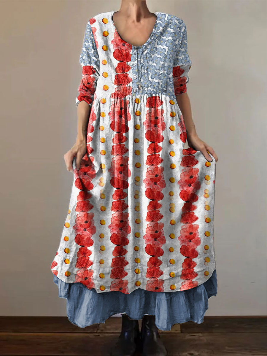 Women's Memorial Day Poppy Flag Veteran Printed Dress