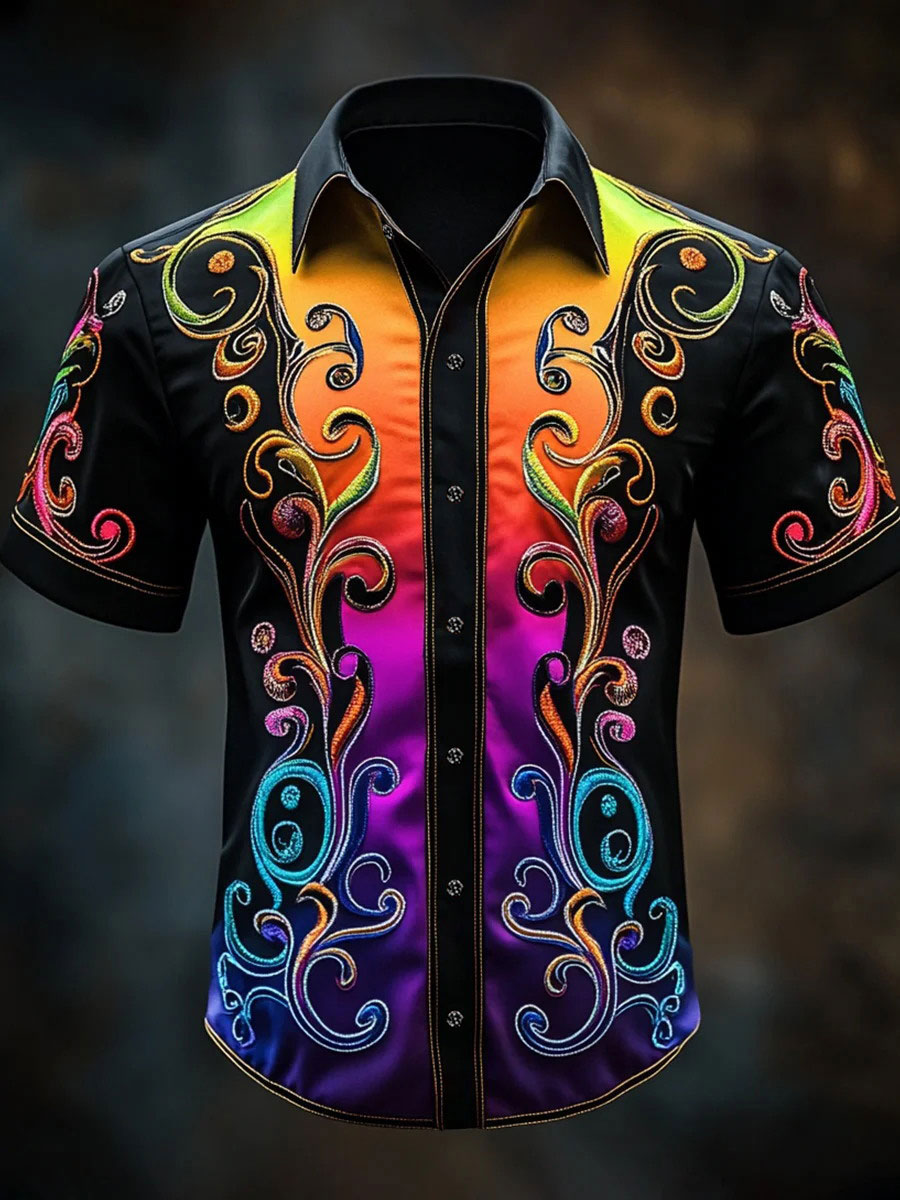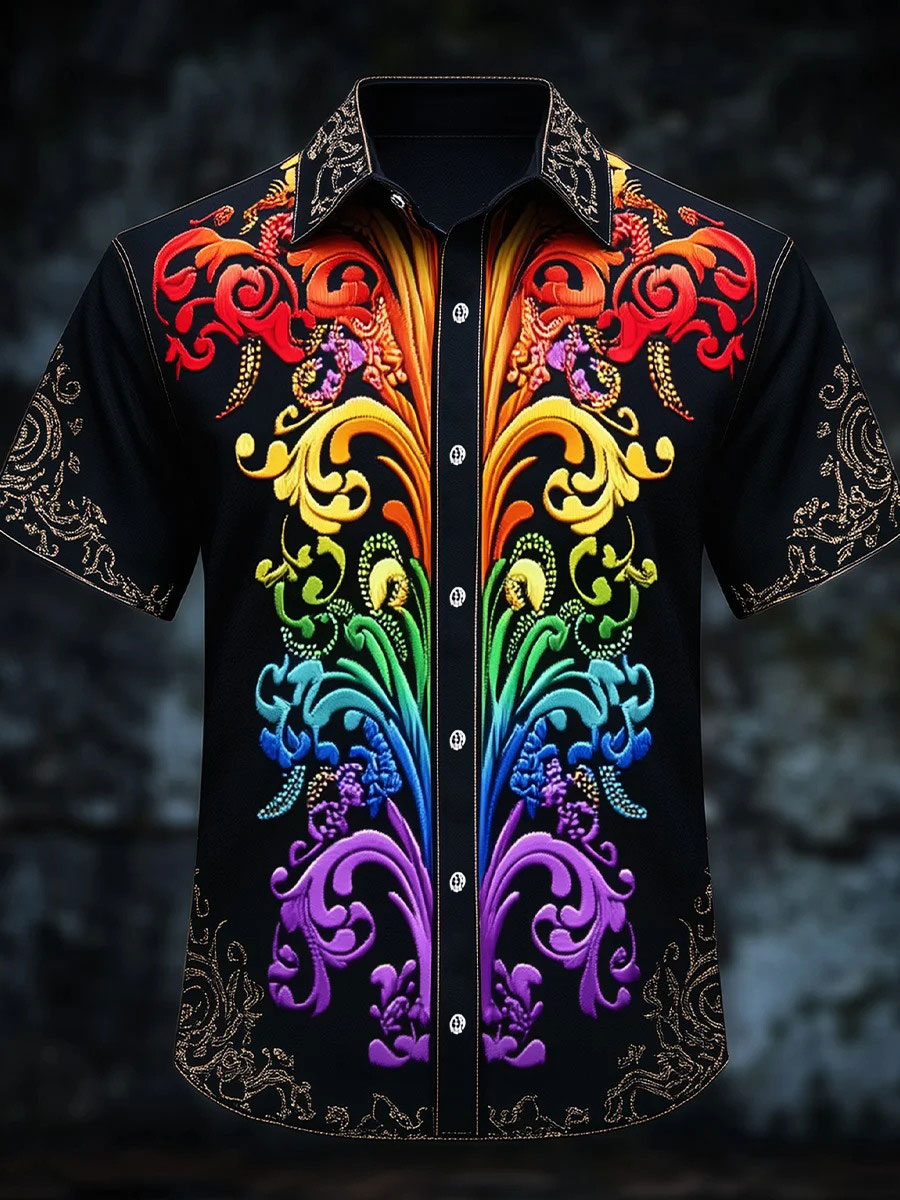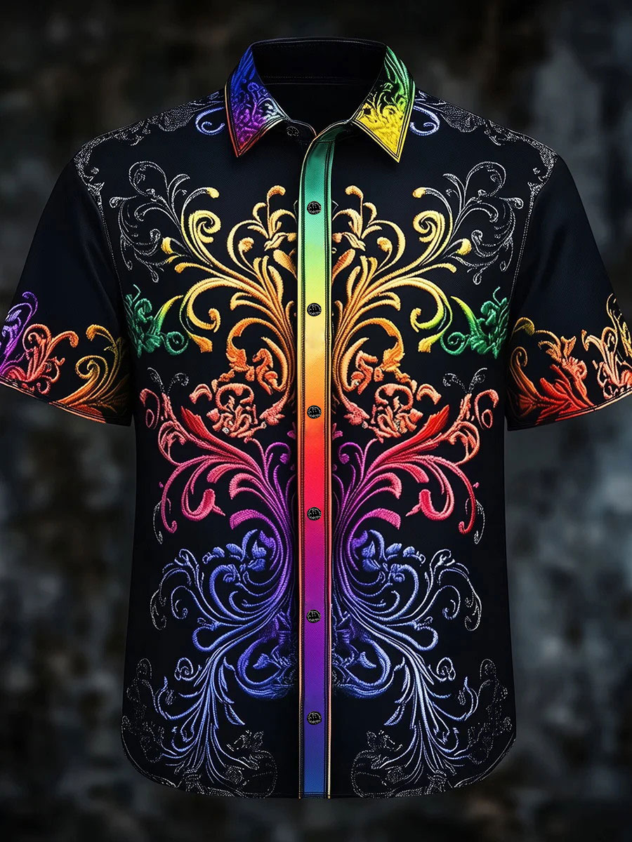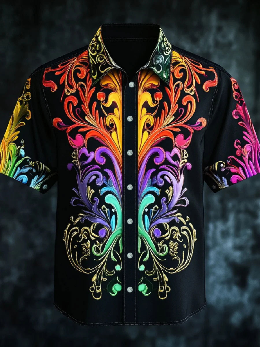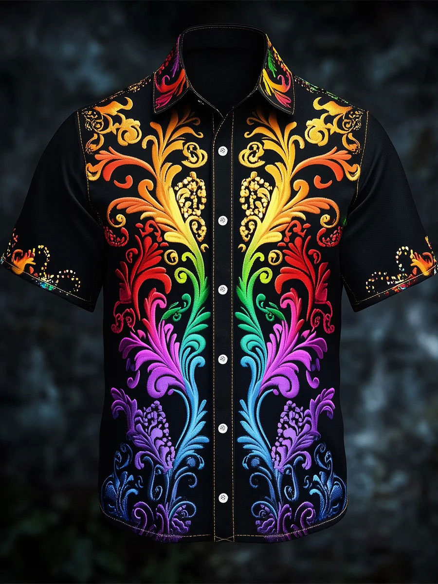 Men's Rainbow Gradient Baroque Art Print Casual Shirt