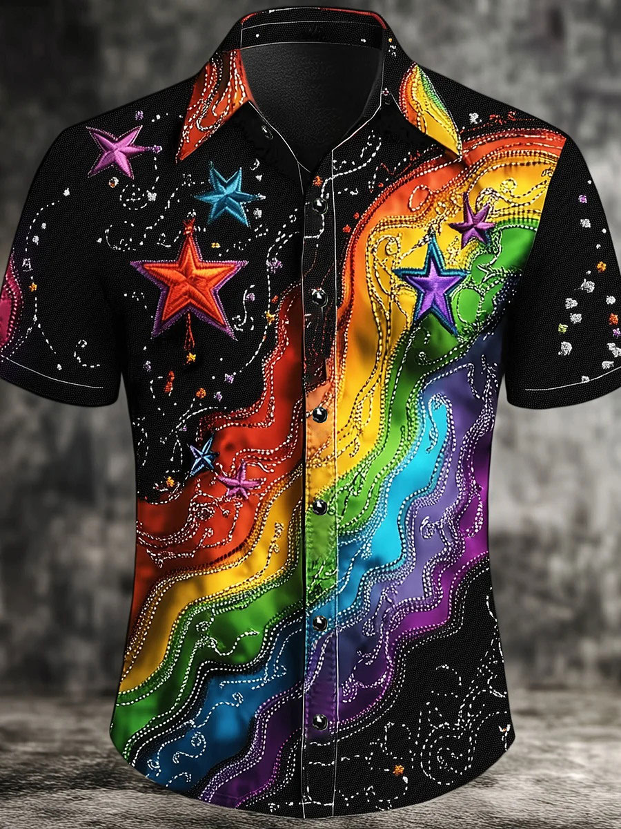 Men's Pride Month Rainbow-Print Casual Short Sleeve Top