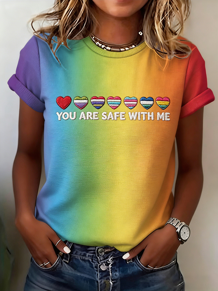 Women's Pride Month Rainbow YOU ARE SAFE WITH ME Print Casual T-Shirt