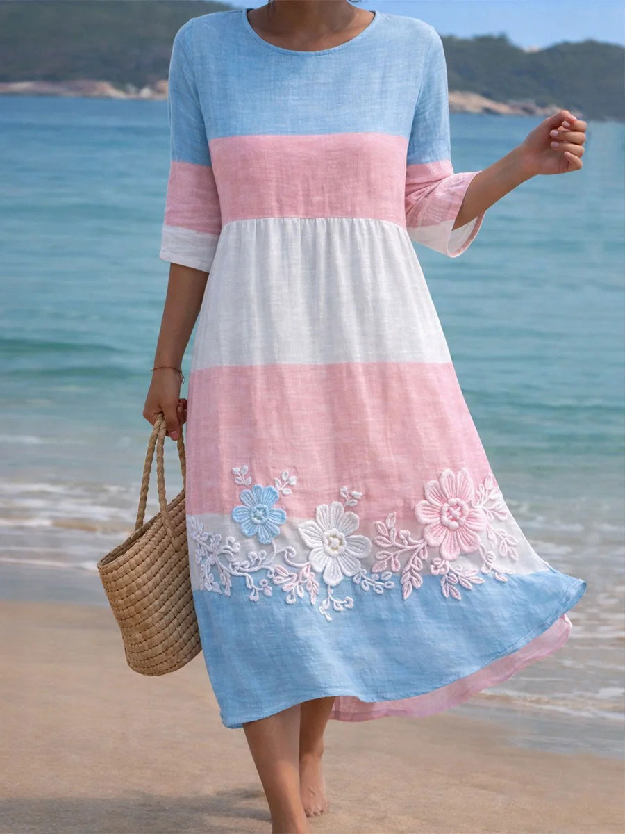 Women's Pink and Blue Floral Print Casual Dress