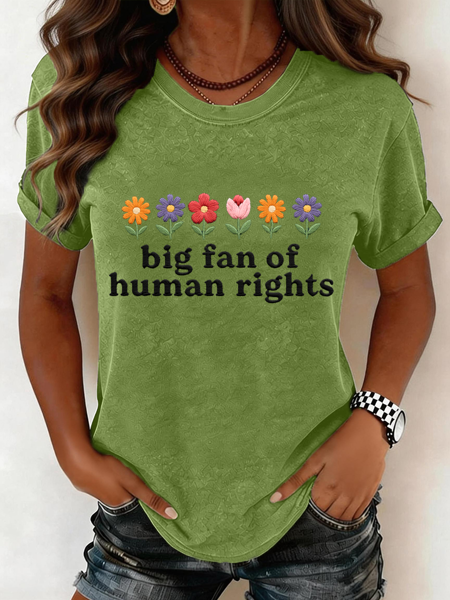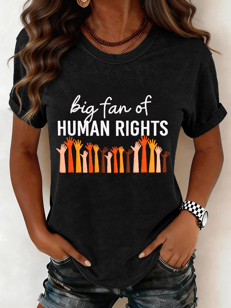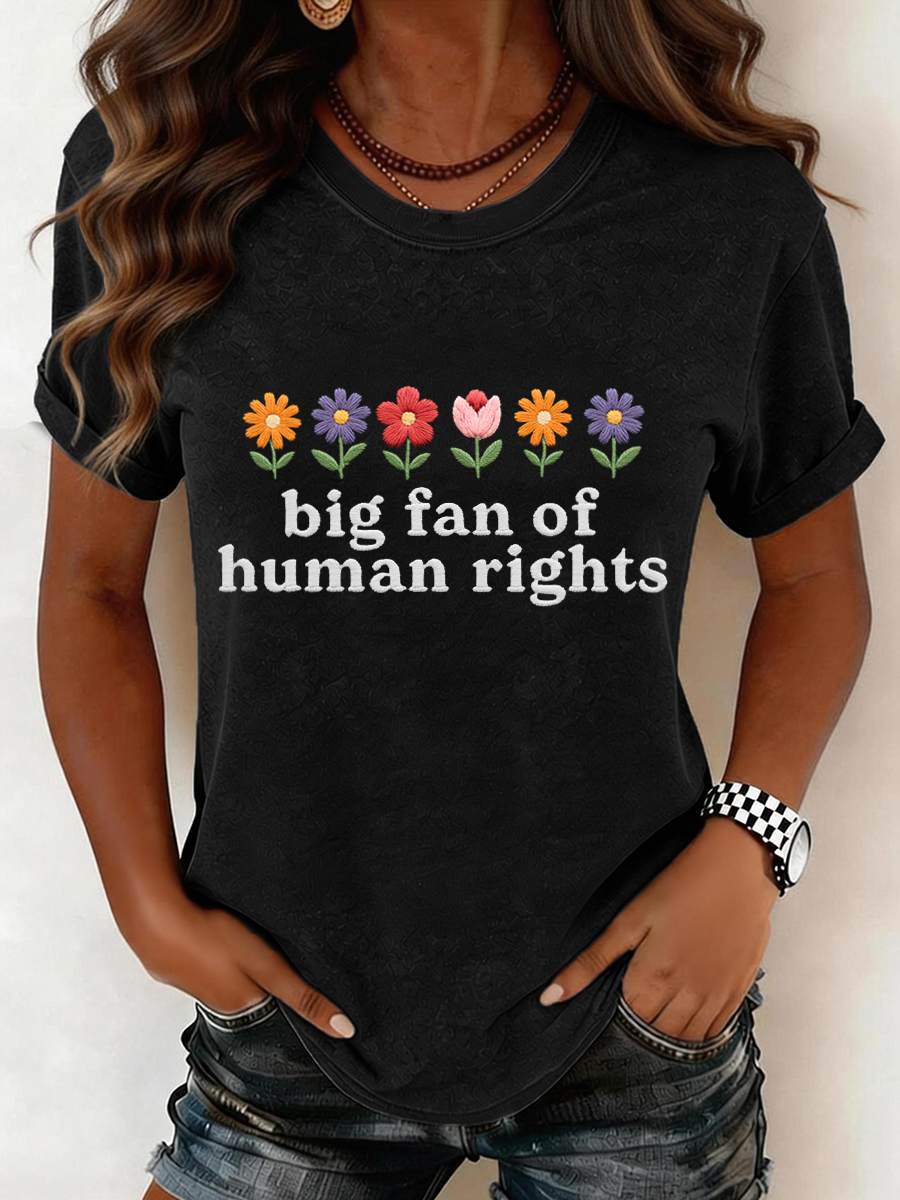 Women's Big Fan of Human Rights Embroidery Pattern T-Shirt