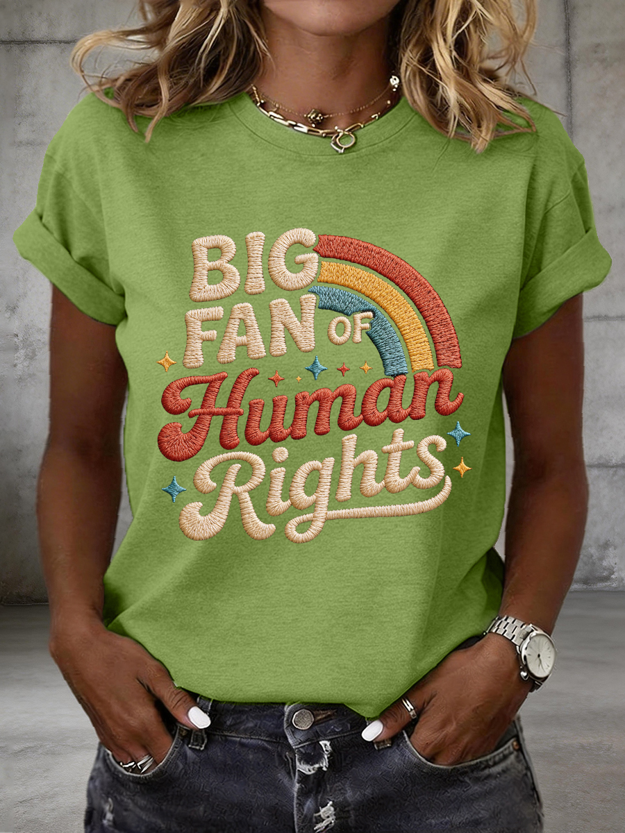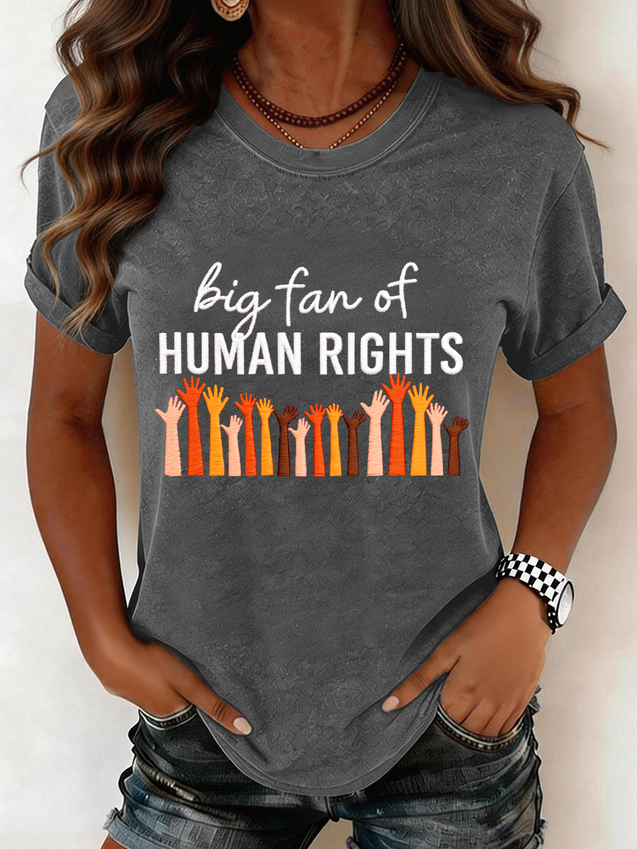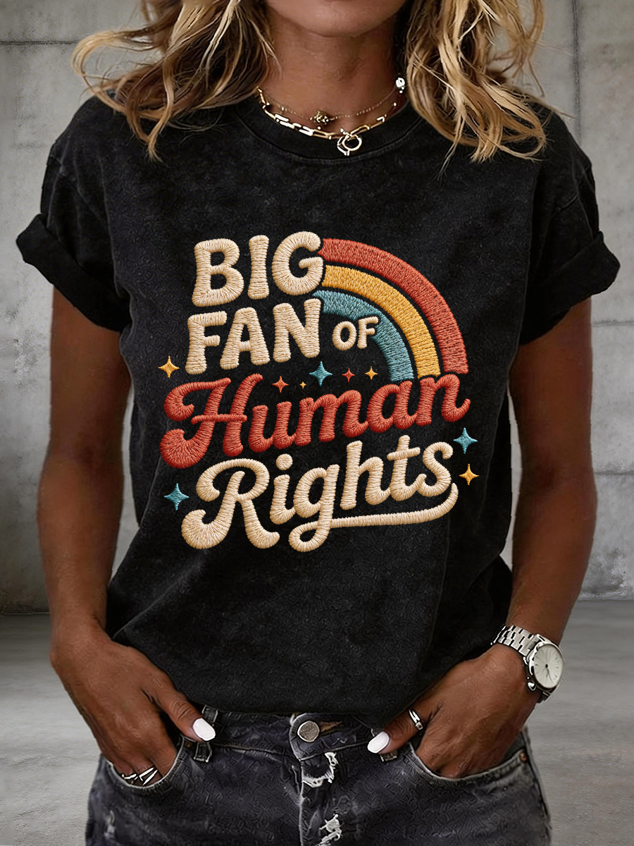 Women's Big Fan of Human Rights Embroidery Pattern T-Shirt