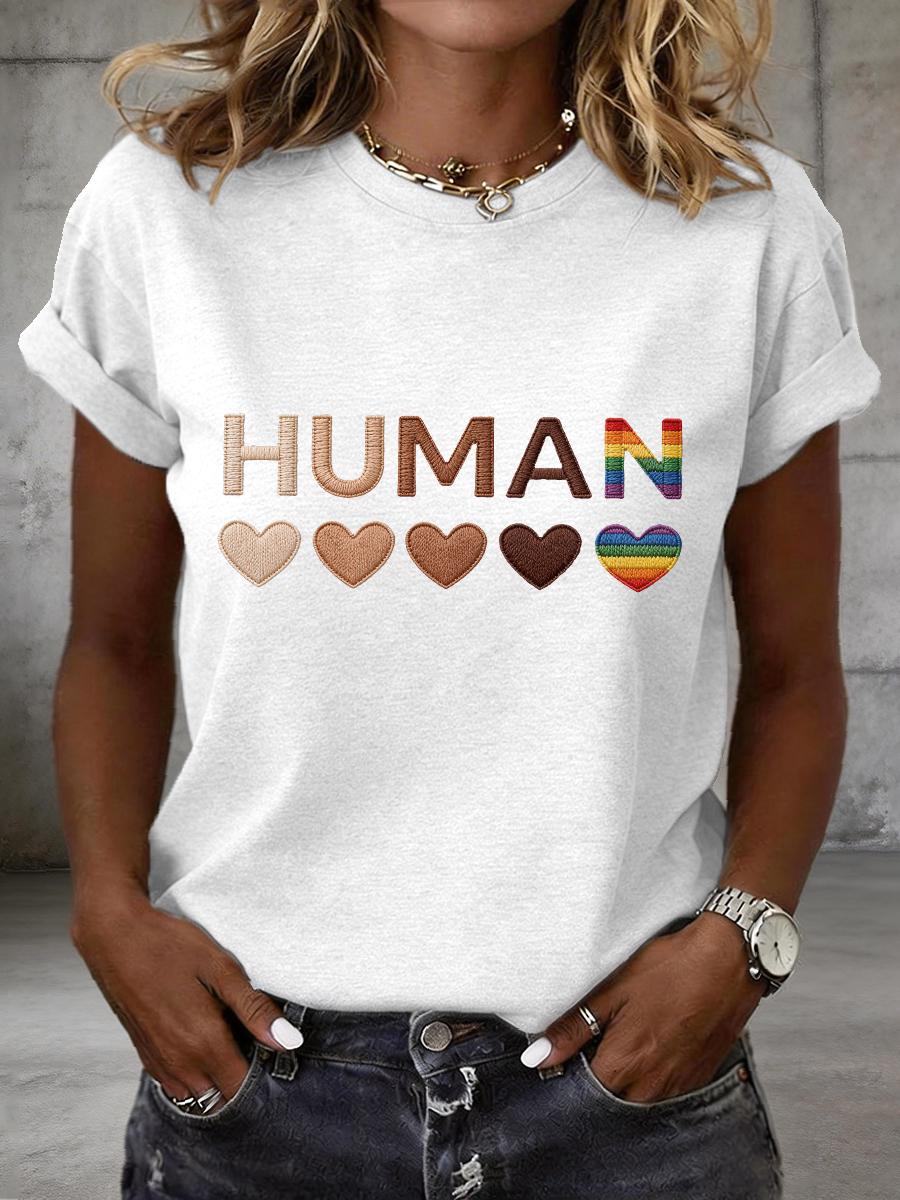 Women's Human Equality Embroidery Pattern T-Shirt