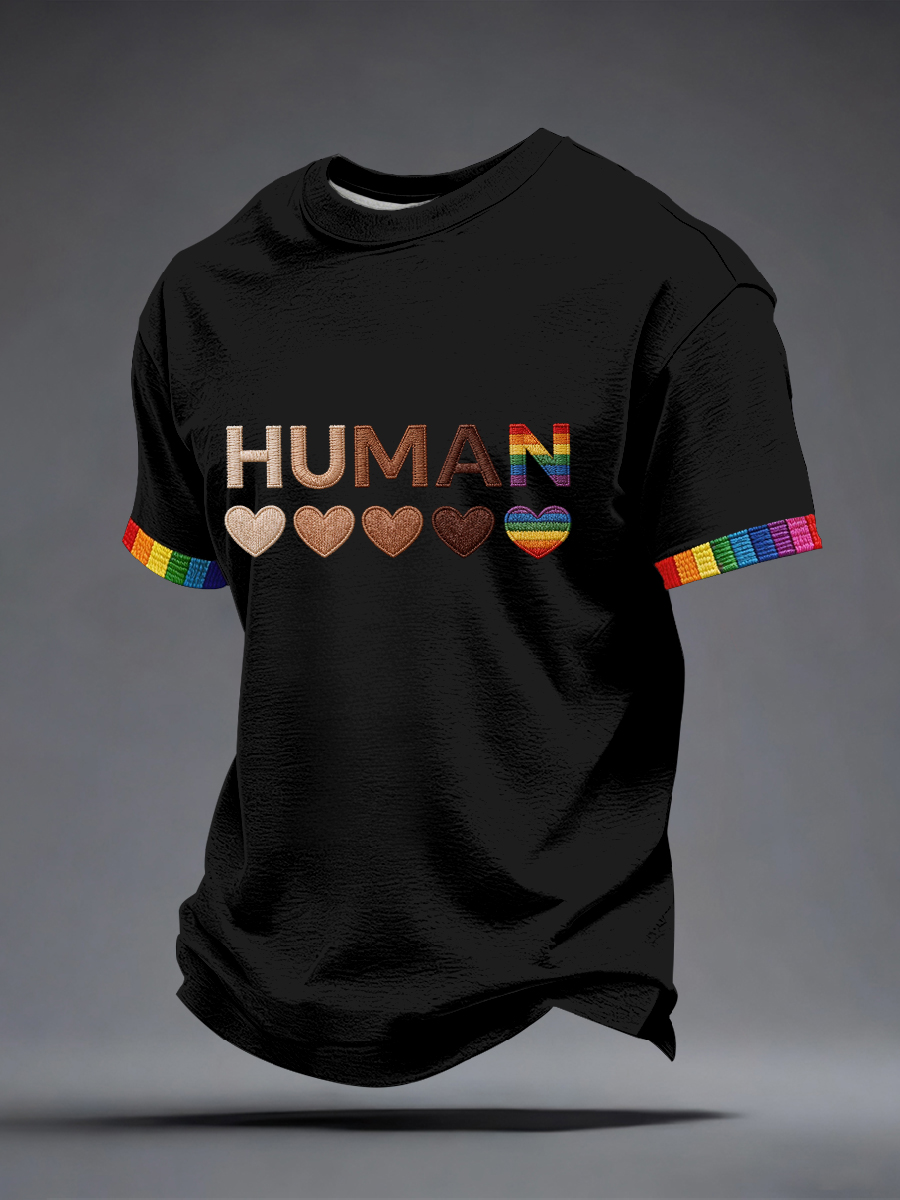 Men's Human Equality Embroidery Pattern T-Shirt