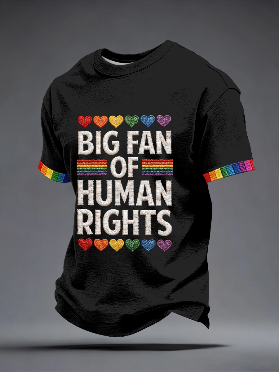 Men's Big Fan of Human Rights Embroidery Pattern T-Shirt