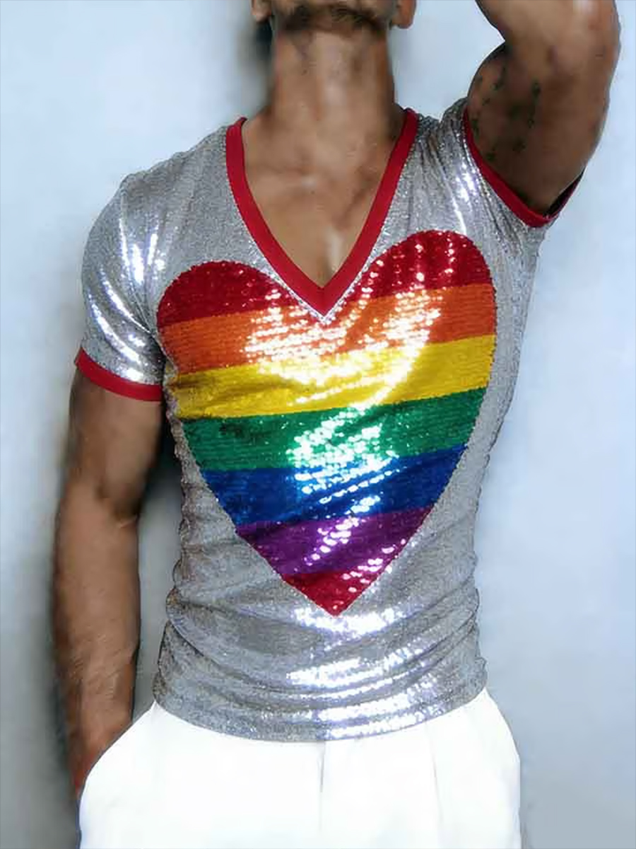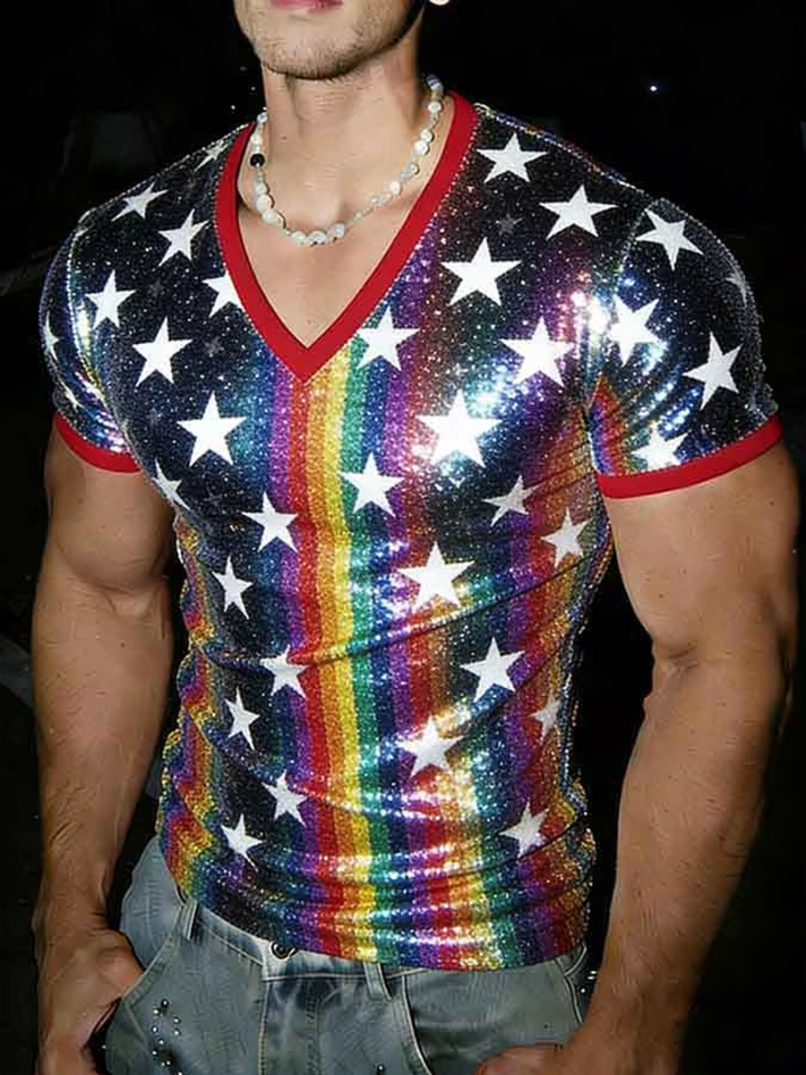 Men's Pride Month Rainbow Art V-Neck Short Sleeve T-shirt