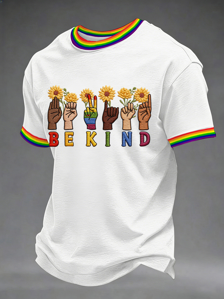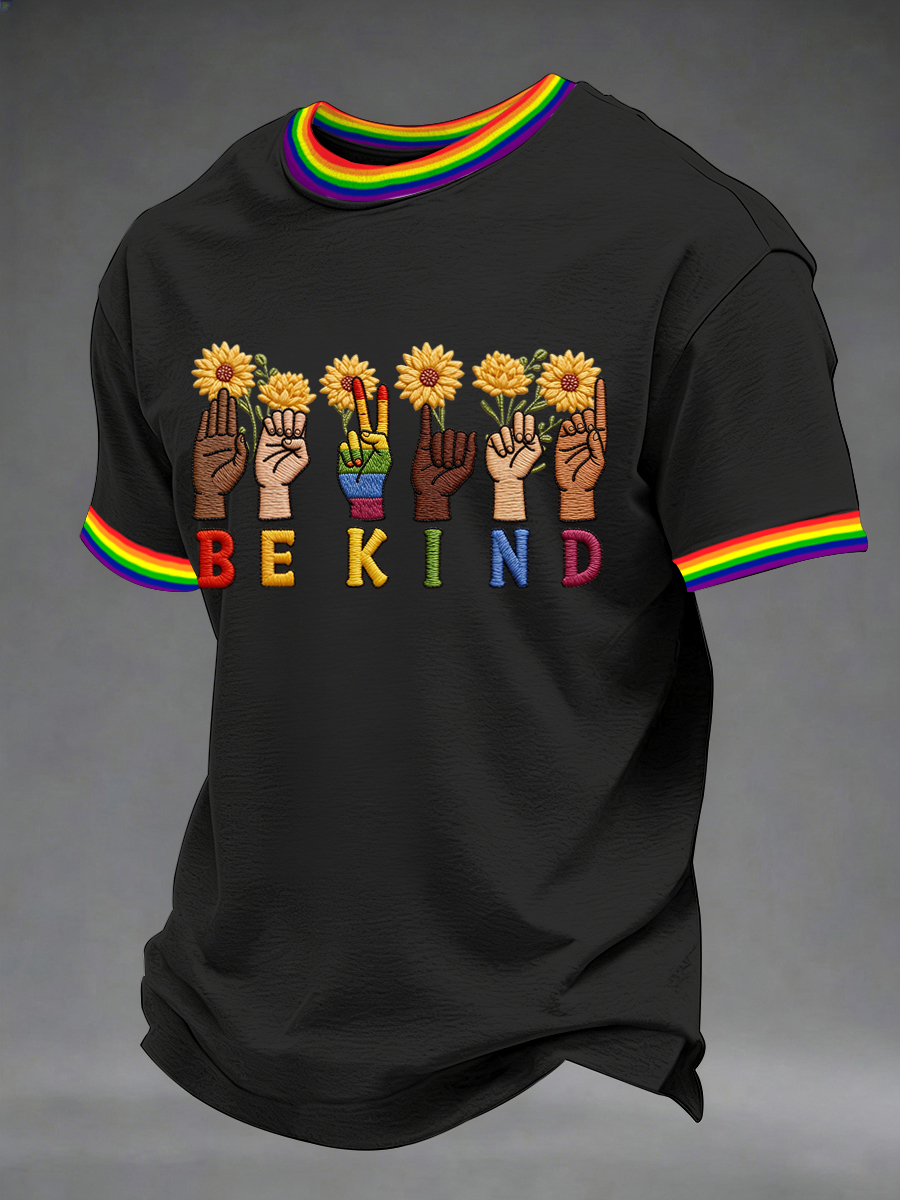 Men's Be Kind Rainbow Print Pride Month Casual Tee