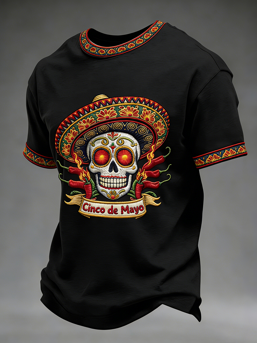 Men's Cinco de Mayo Print Casual V-neck T-shirt