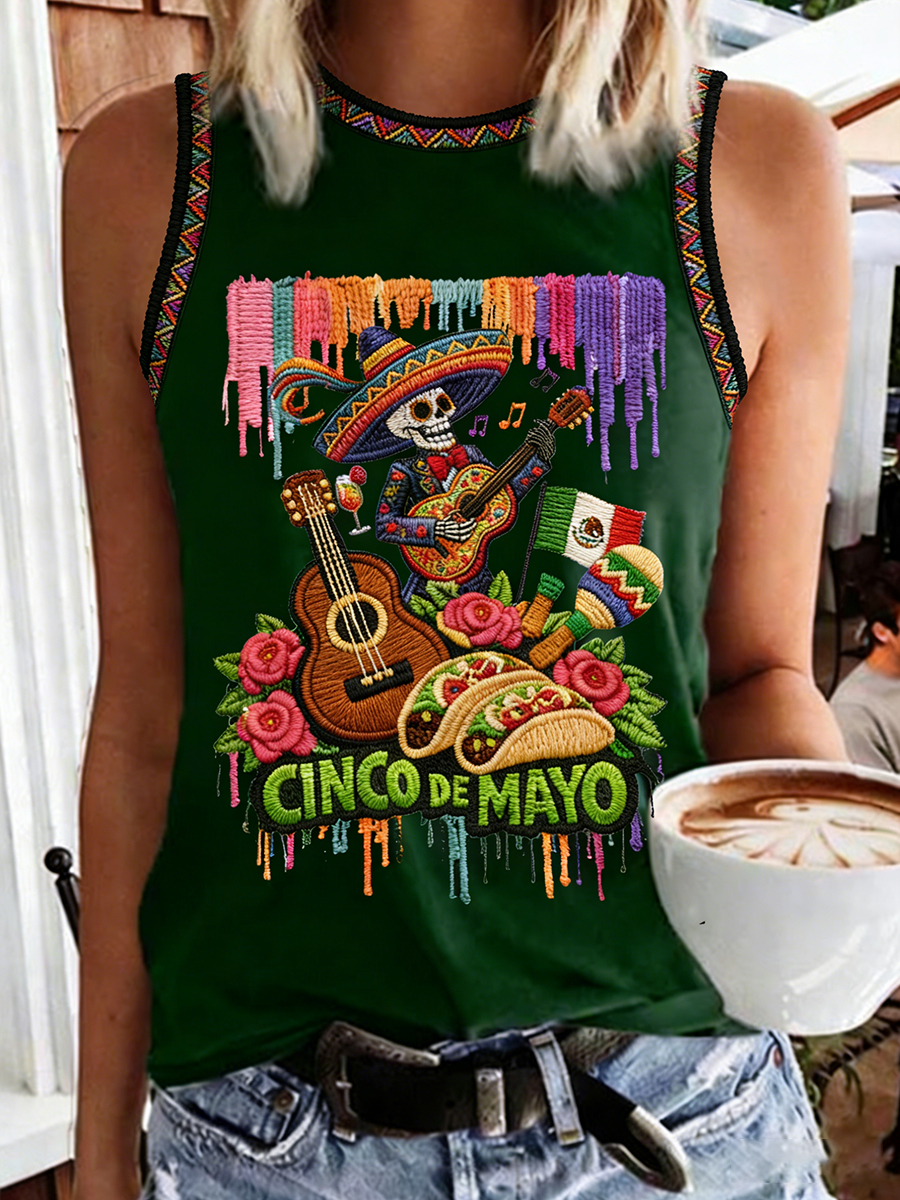 Women's Cinco De Mayo Print Casual Sleeveless Tee
