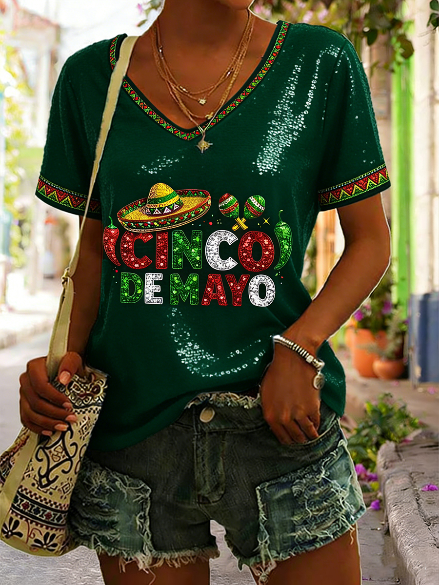 Women's Cinco De Mayo Print Casual Ruffle Sleeve Tee