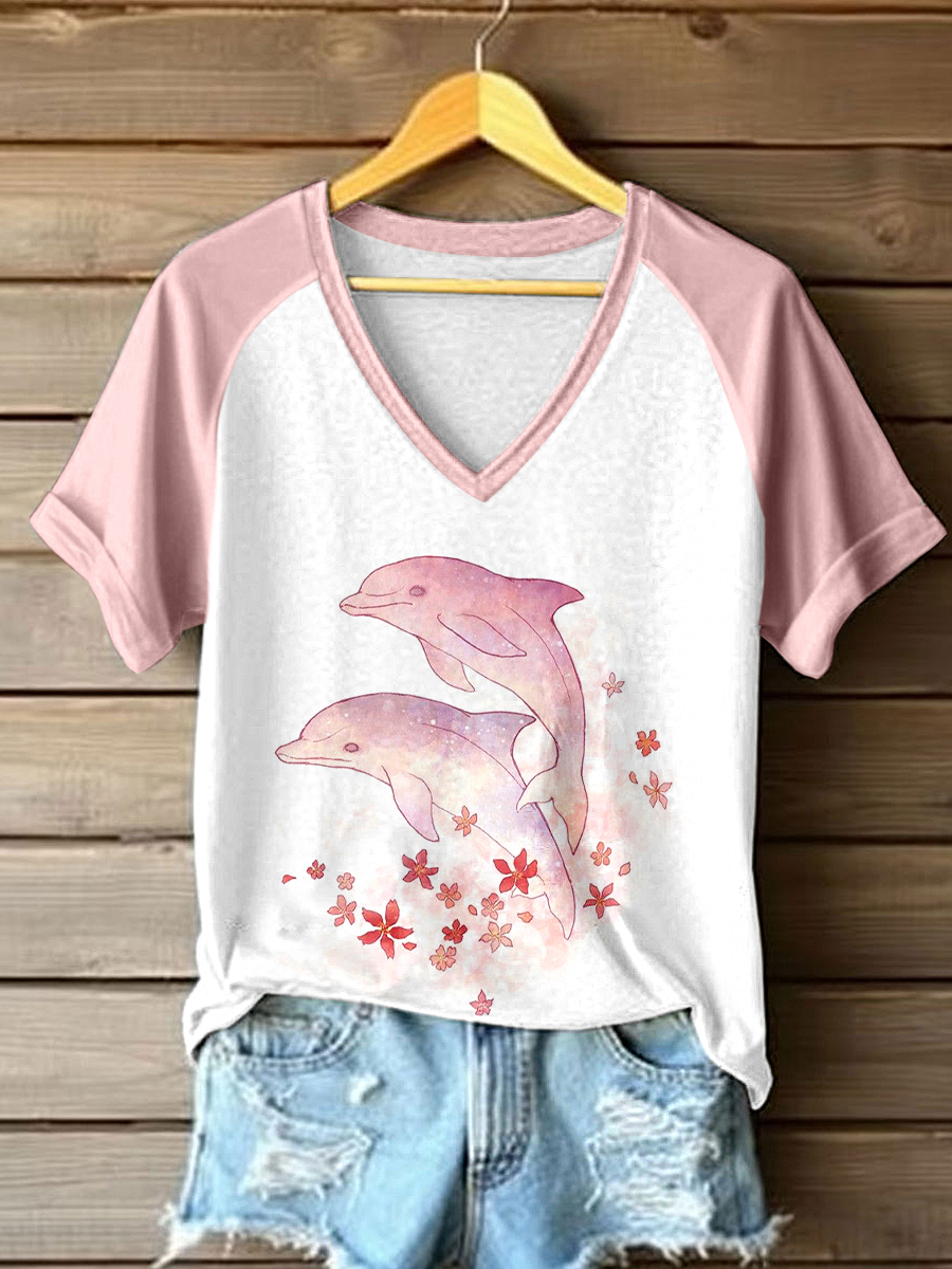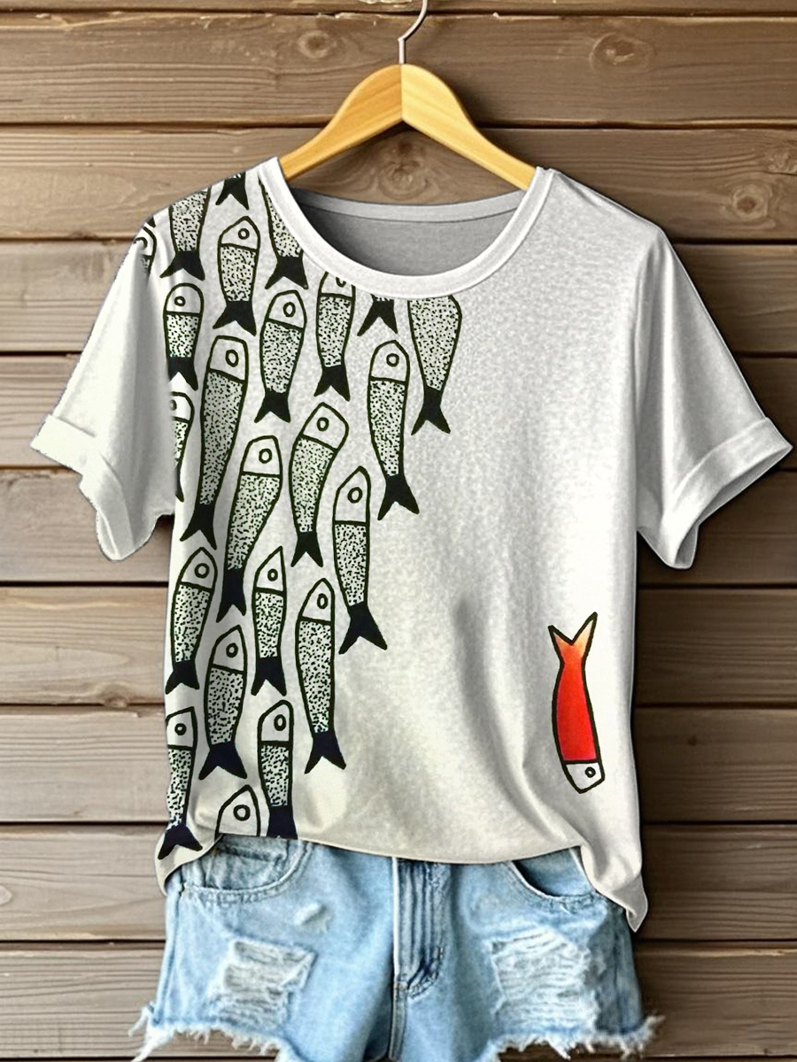 Women's Vintage Fish Print Short Sleeve T-Shirt