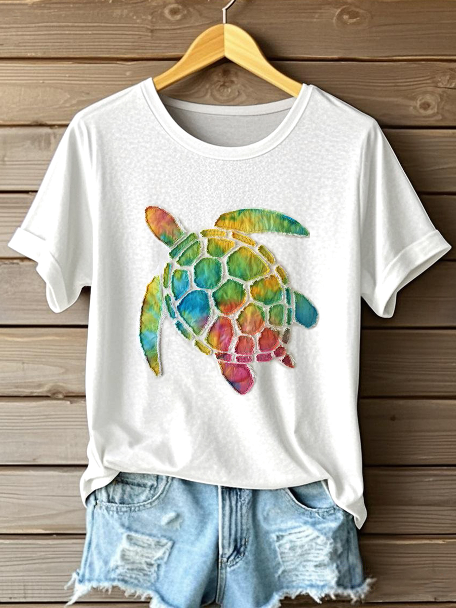 Women's Tie-Dye Patchwork Sea Turtle Pattern T-Shirt