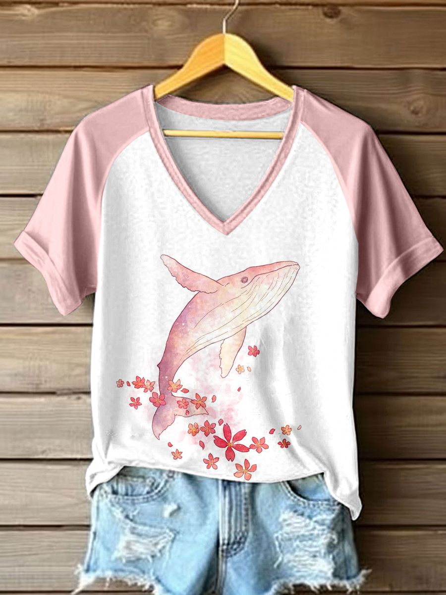Women's Whale Art Print Short Sleeve T-Shirt