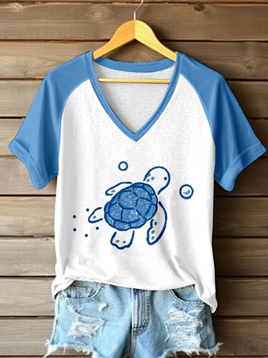 Women's Cute Sea Turtle Art Print T-Shirt
