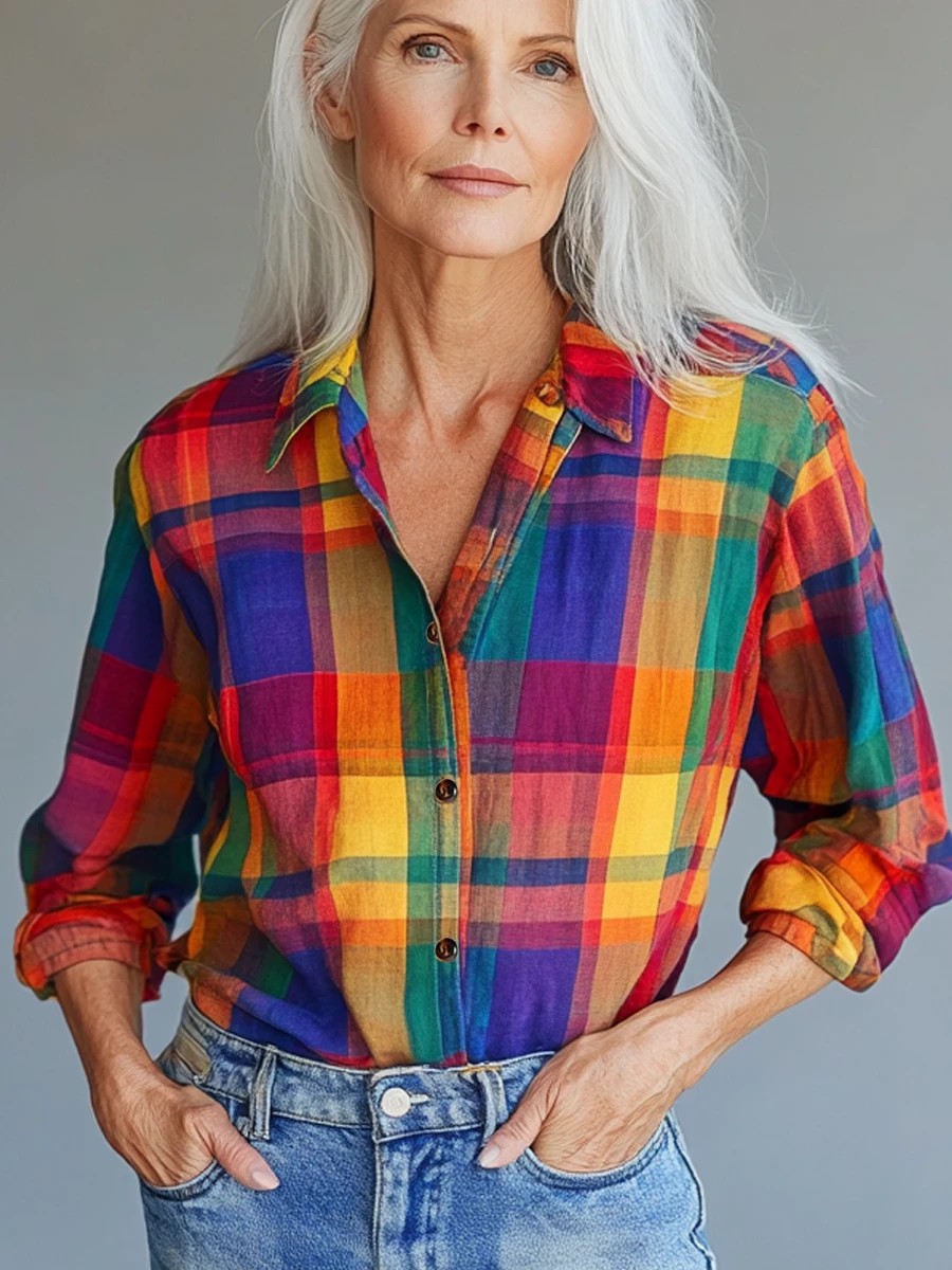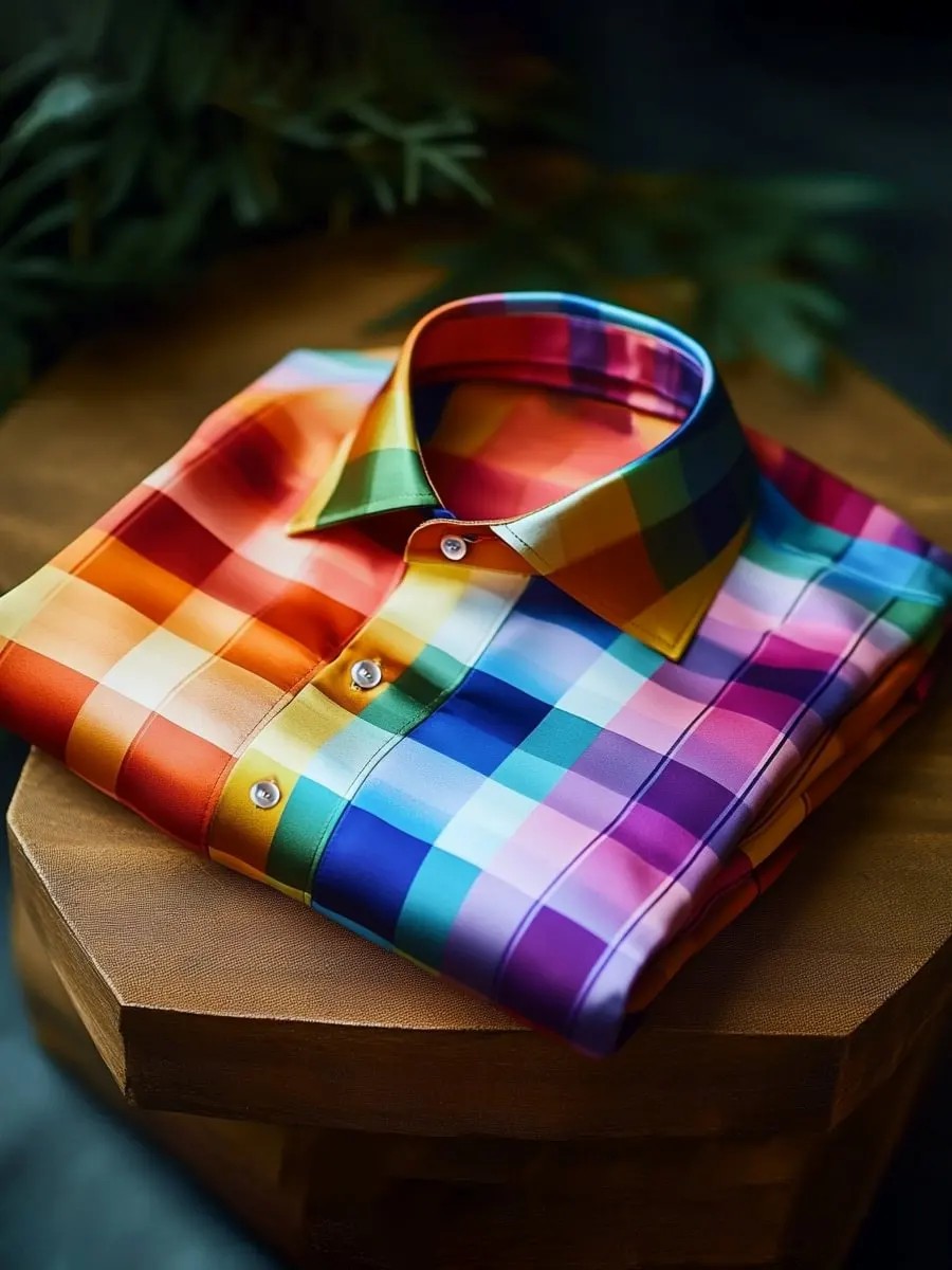 Men's Pride Month Rainbow Plaid Art Printed Shirt