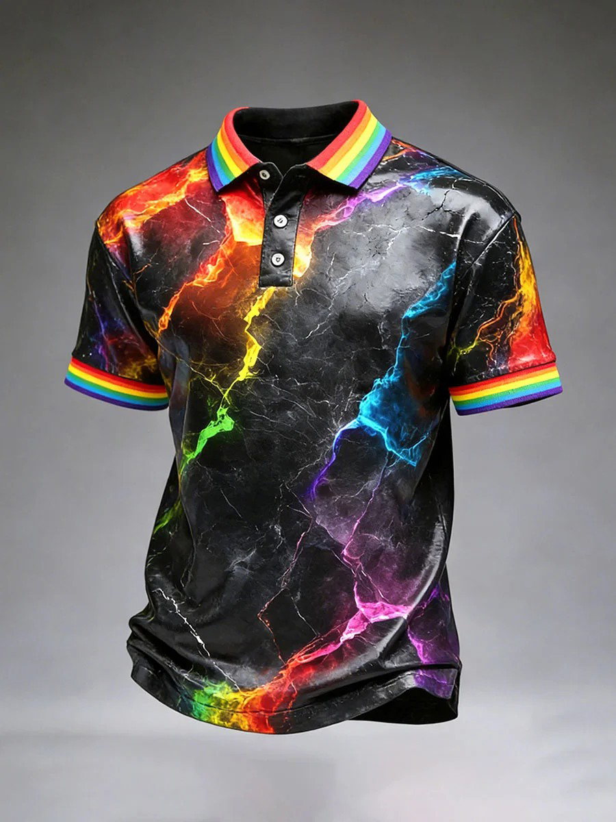 Men's Pride Month Rainbow-Print Casual Short Sleeve Shirt