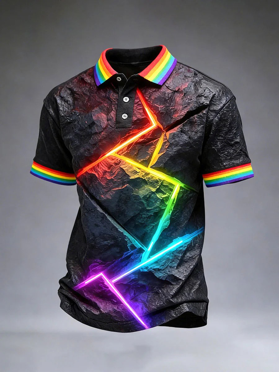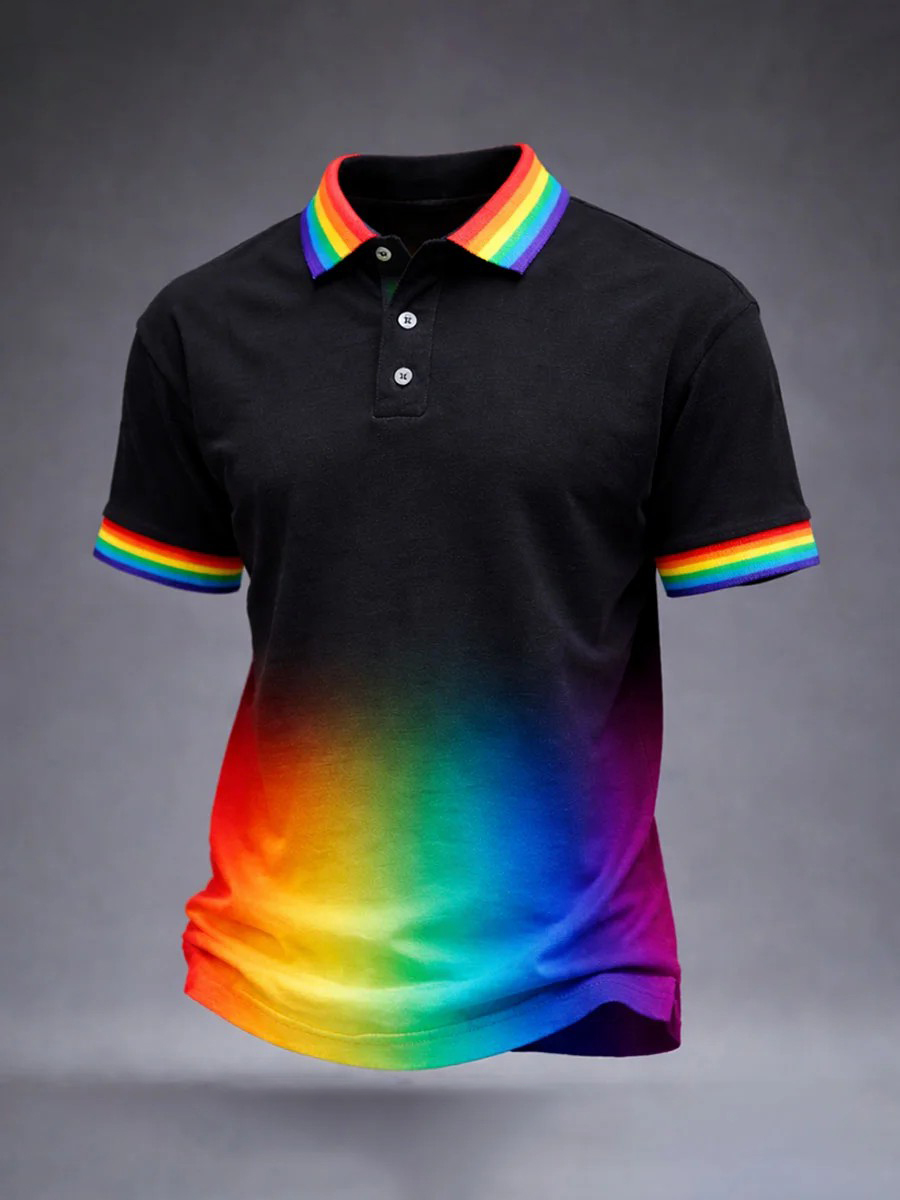 Men's Pride Month Rainbow-Print Casual Short Sleeve Top