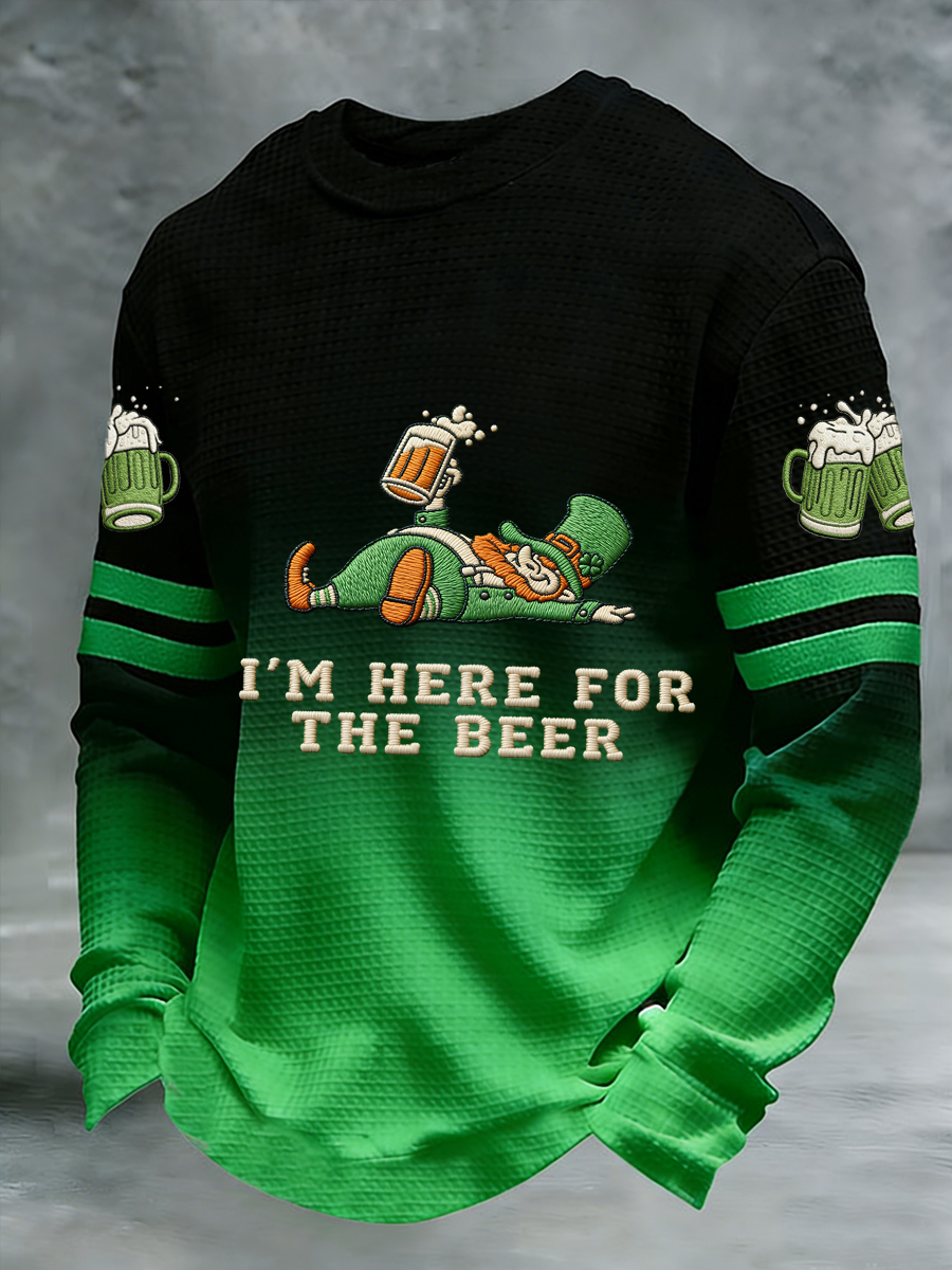 Men's Funny St. Patrick's Day I'm Here For The Beer Casual Waffle Sweatshirt