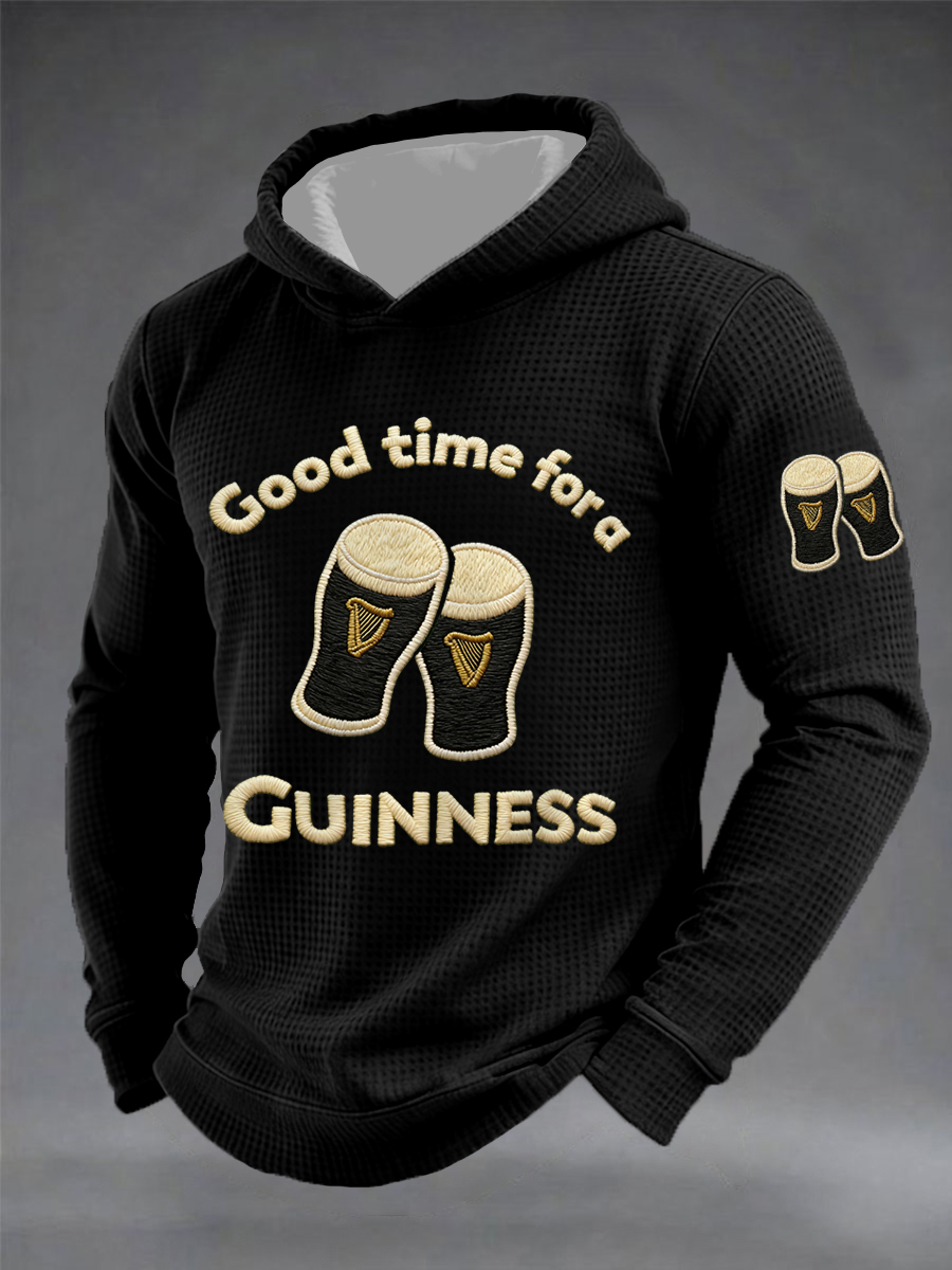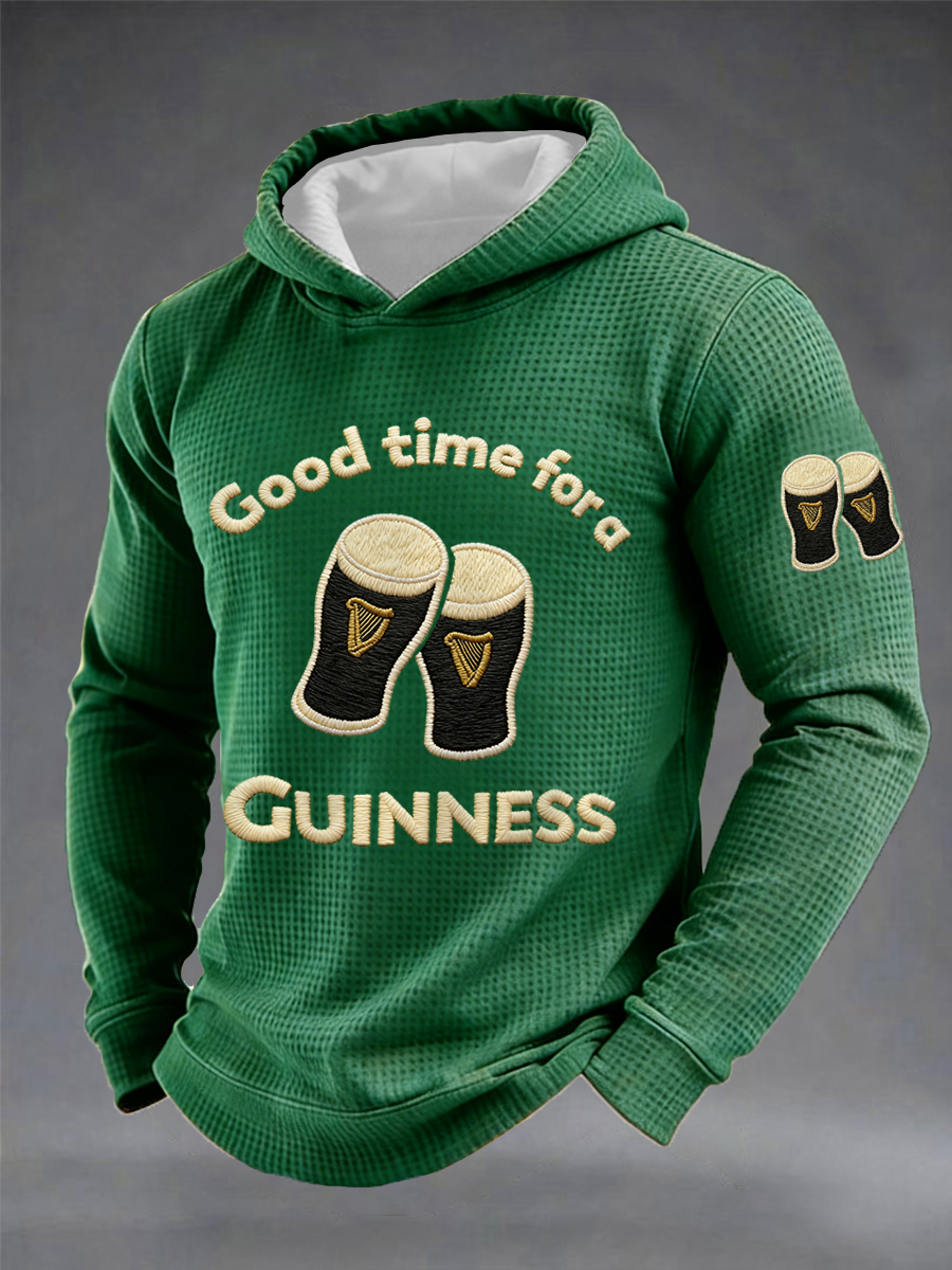 Men's St. Patrick's Day Good Time For A Guinness Print Casual Waffle Hoodie