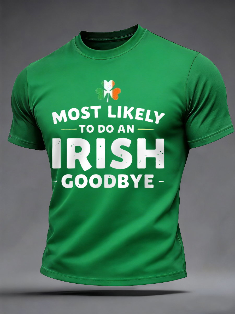 Men's Funny St. Patrick's Day Most Likely To Do An Irish Goodbye Print Casual Tee