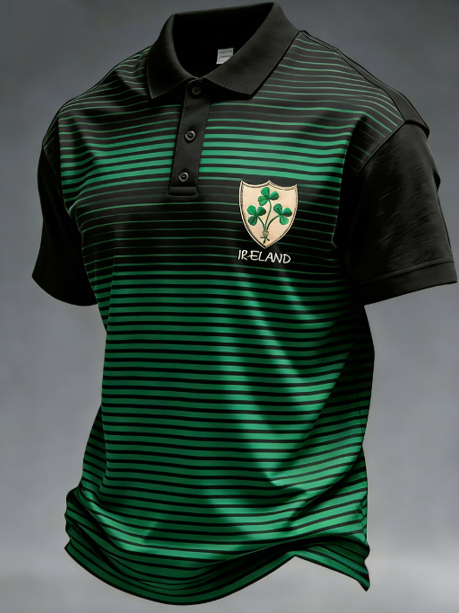 Men's Rugby Shamrock Cotton Longsleeve Striped Shirt
