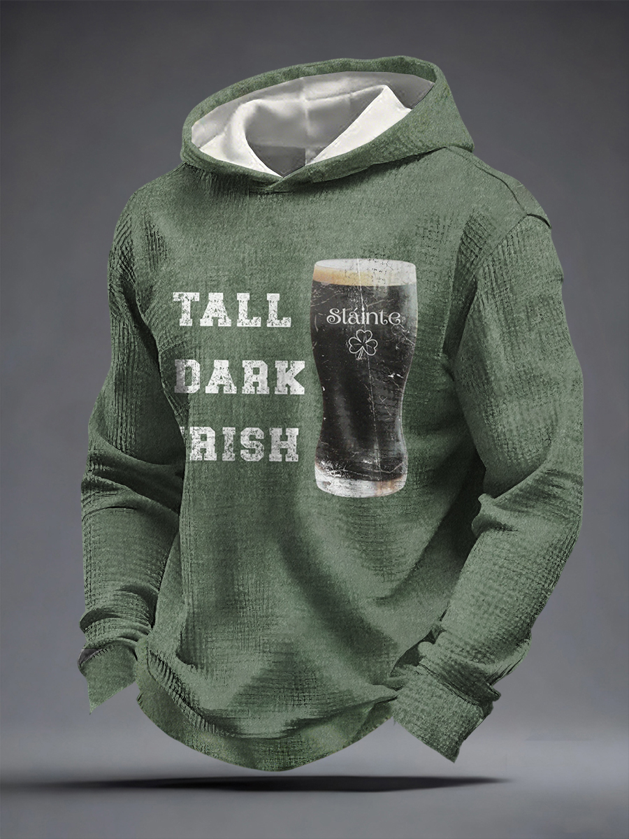 Men's Funny St. Patrick's Day Irish Today Hungover Tomorrow Print Casual Waffle Hoodie