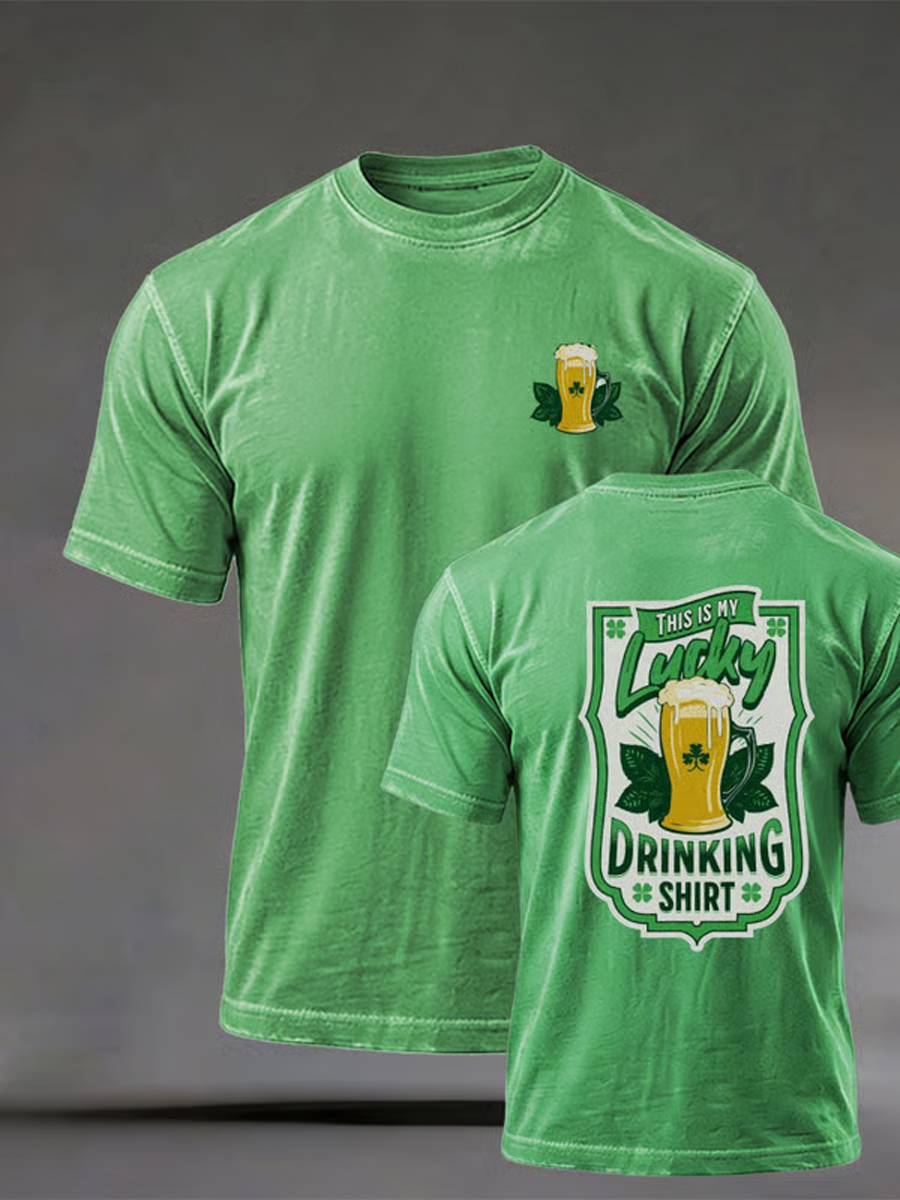 Men's Funny St.Patrick's Day THIS IS MY LUCKY DRINKING SHIRT Casual Short Sleeve T-shirt