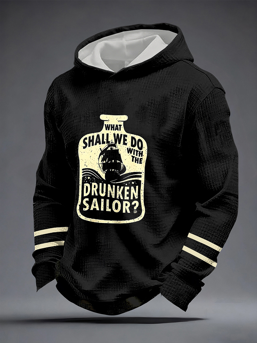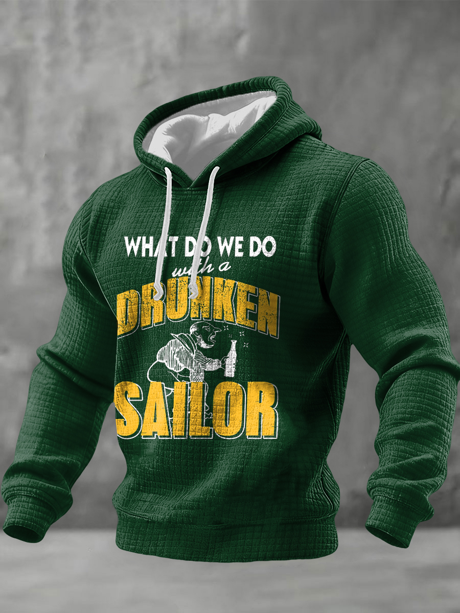 Men's What Do We Do With A Drunken Sailor Checkered Cotton Hoodie