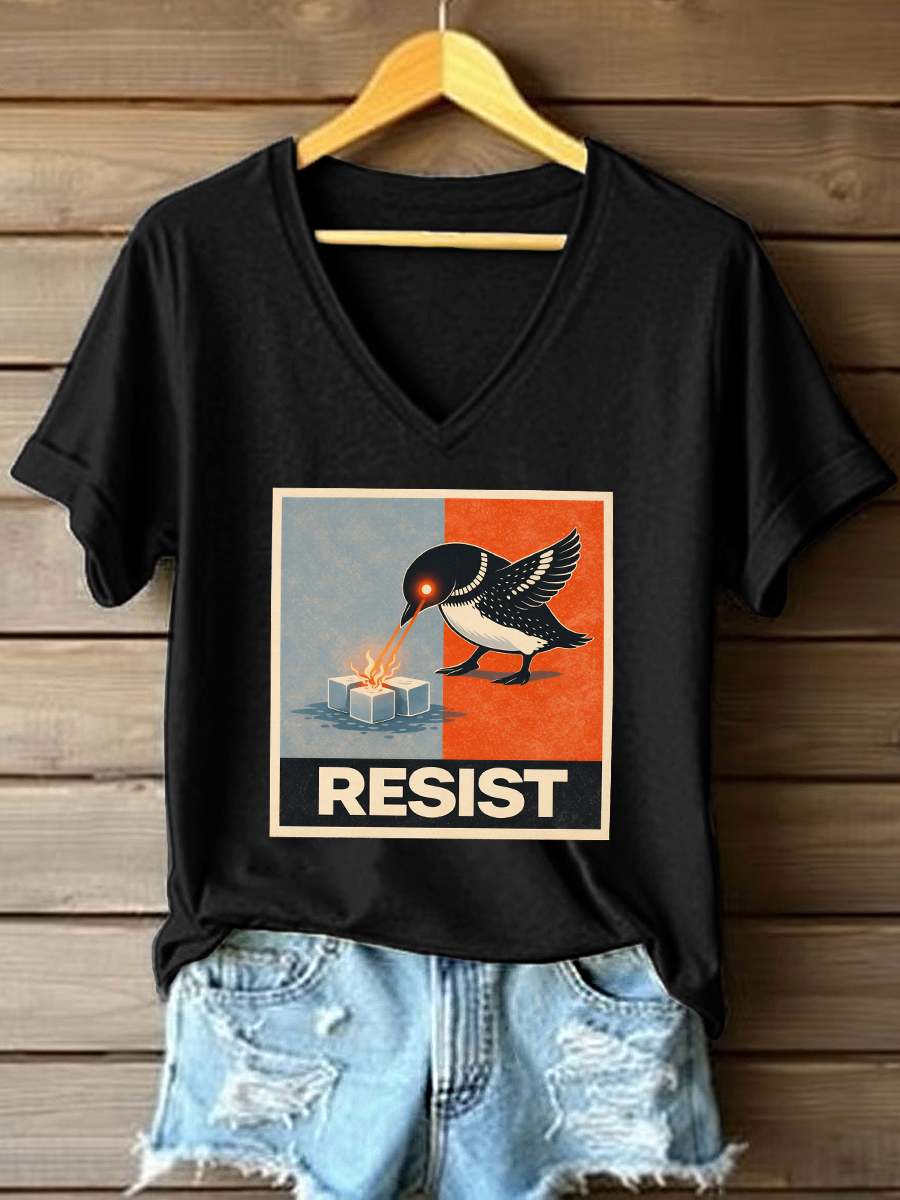 Women's Abolish ICE Loon Print V-Neck T-Shirt