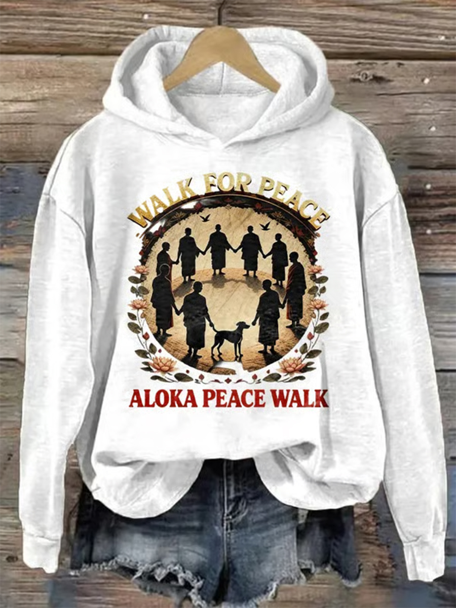 Women's Walk For Peace Print Large-sized Hooded Sweatshirt