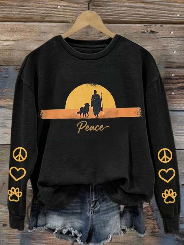 Women's Walk For Peace Monks With Aloka The Peace Dog Printed Sweatshirt