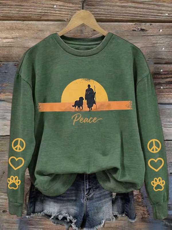 Women's Walk For Peace Monks With Aloka Dog Printed Sweatshirt