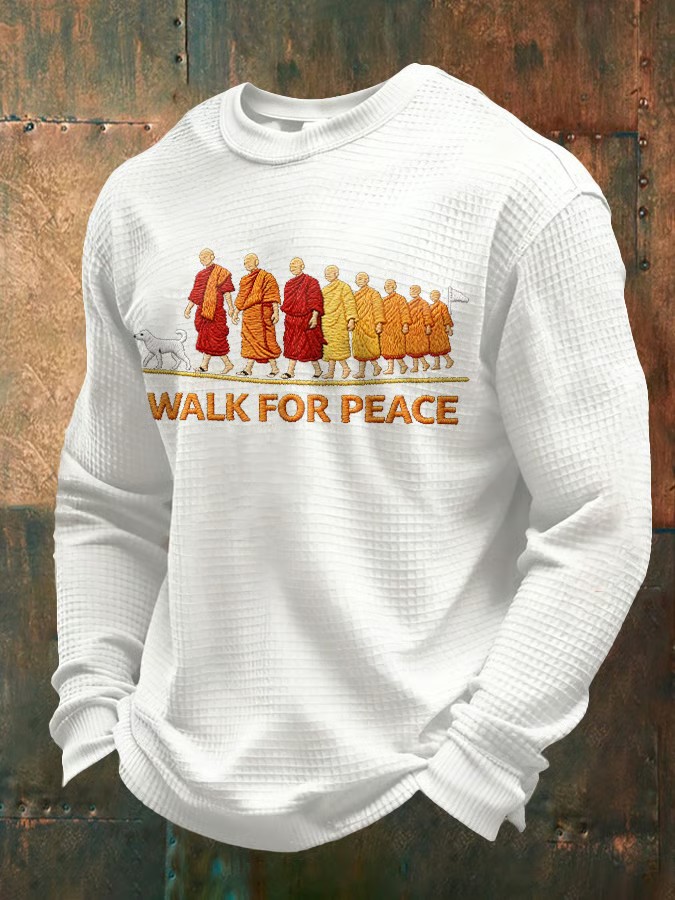 Men's Walk For Peace Printed Waffle Long Sleeve Sweatshirt