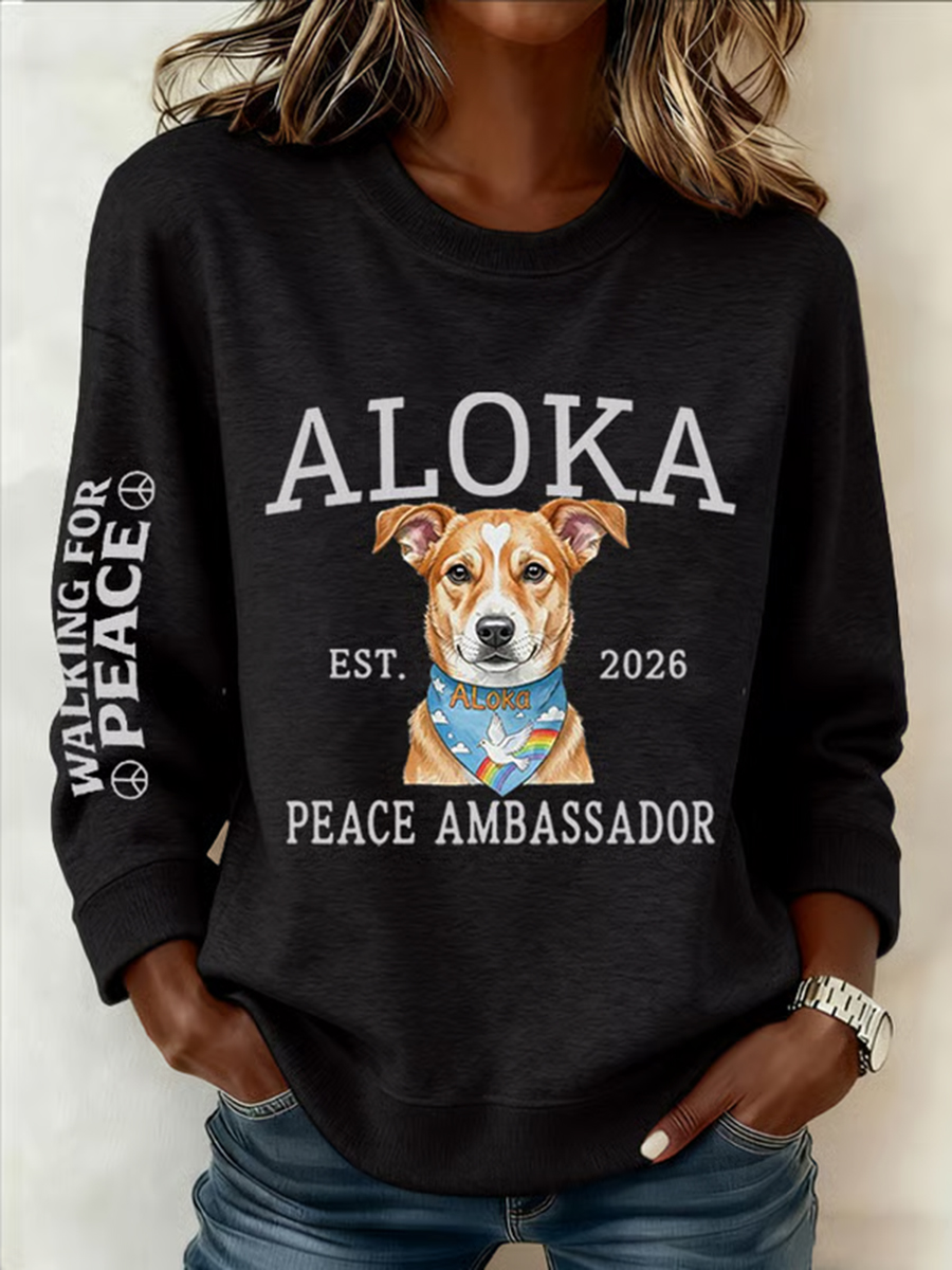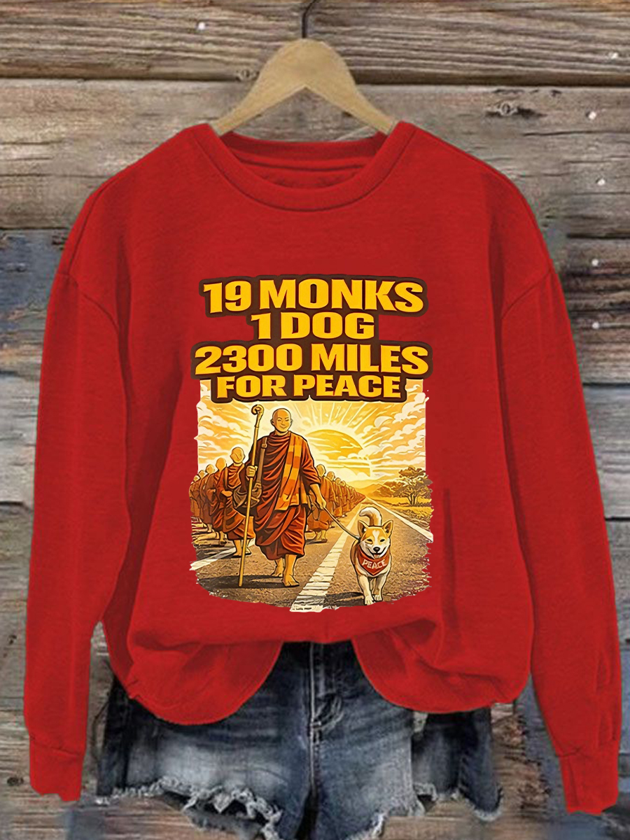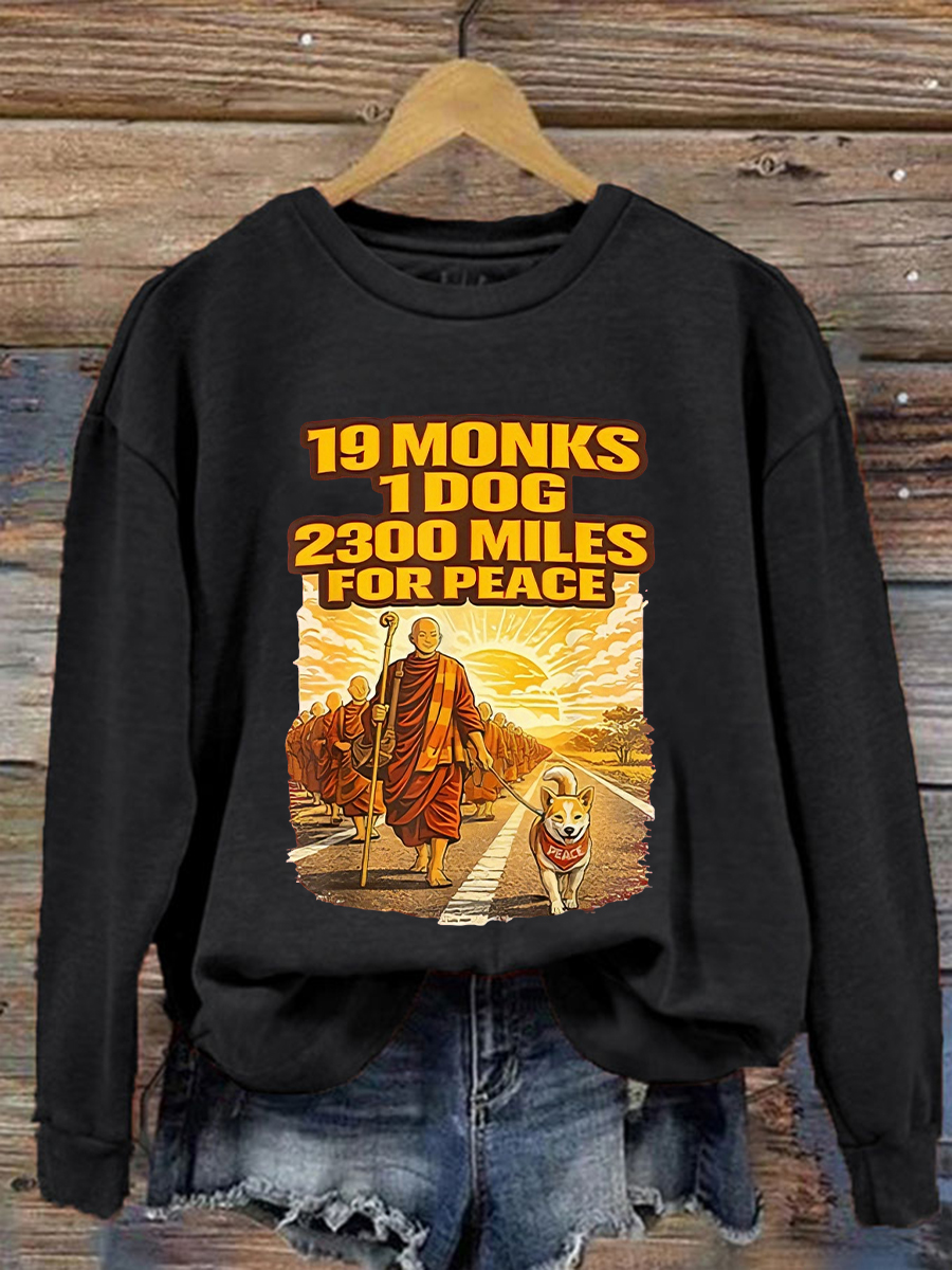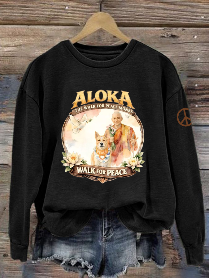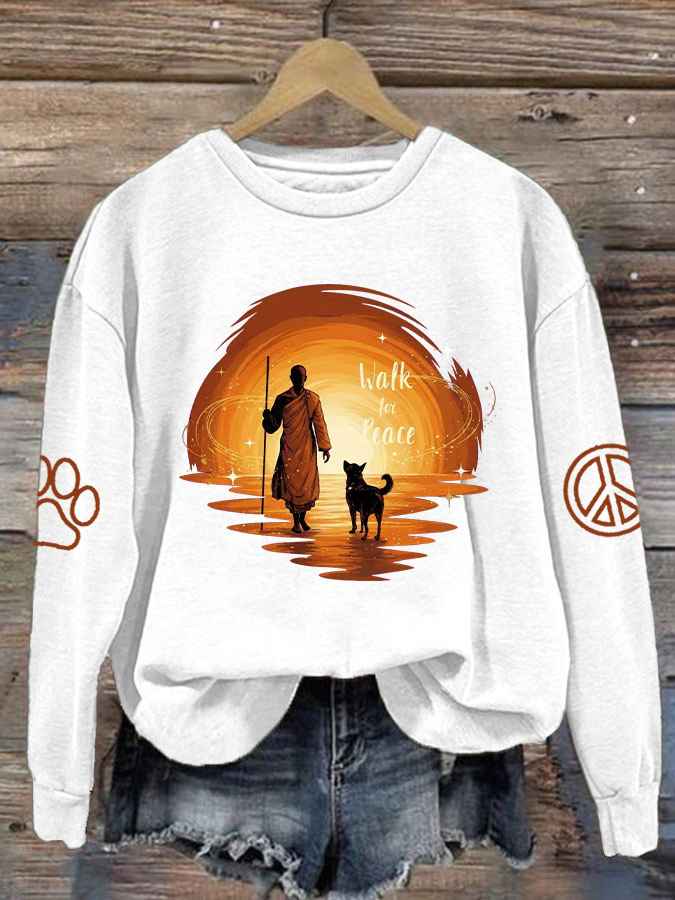 Women's Walk For Peace Monks With Aloka Dog Printed Sweatshirt