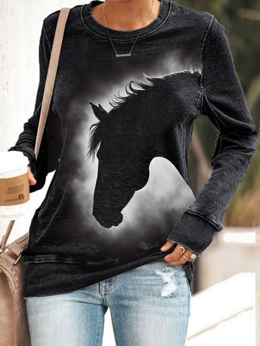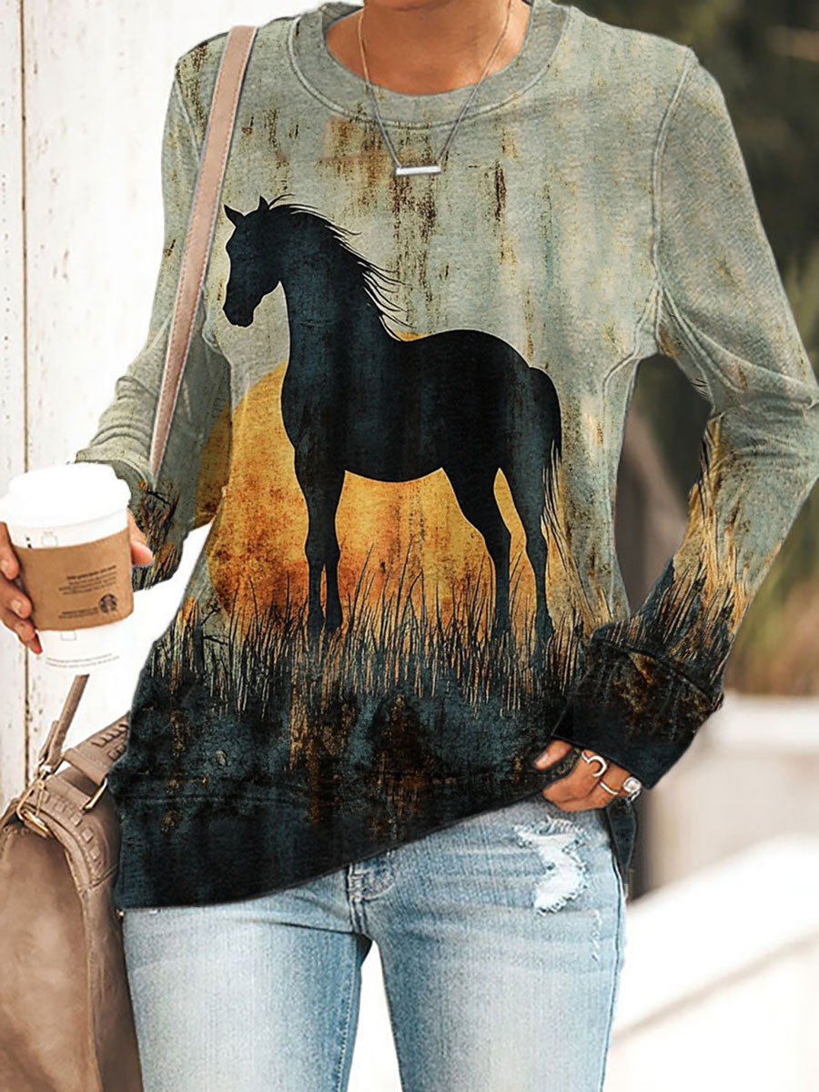 Women's Retro Horse Print Horse Lovers Casual Sweatshirt
