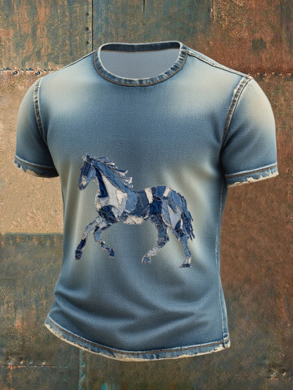 Men's denim horse print T-shirt