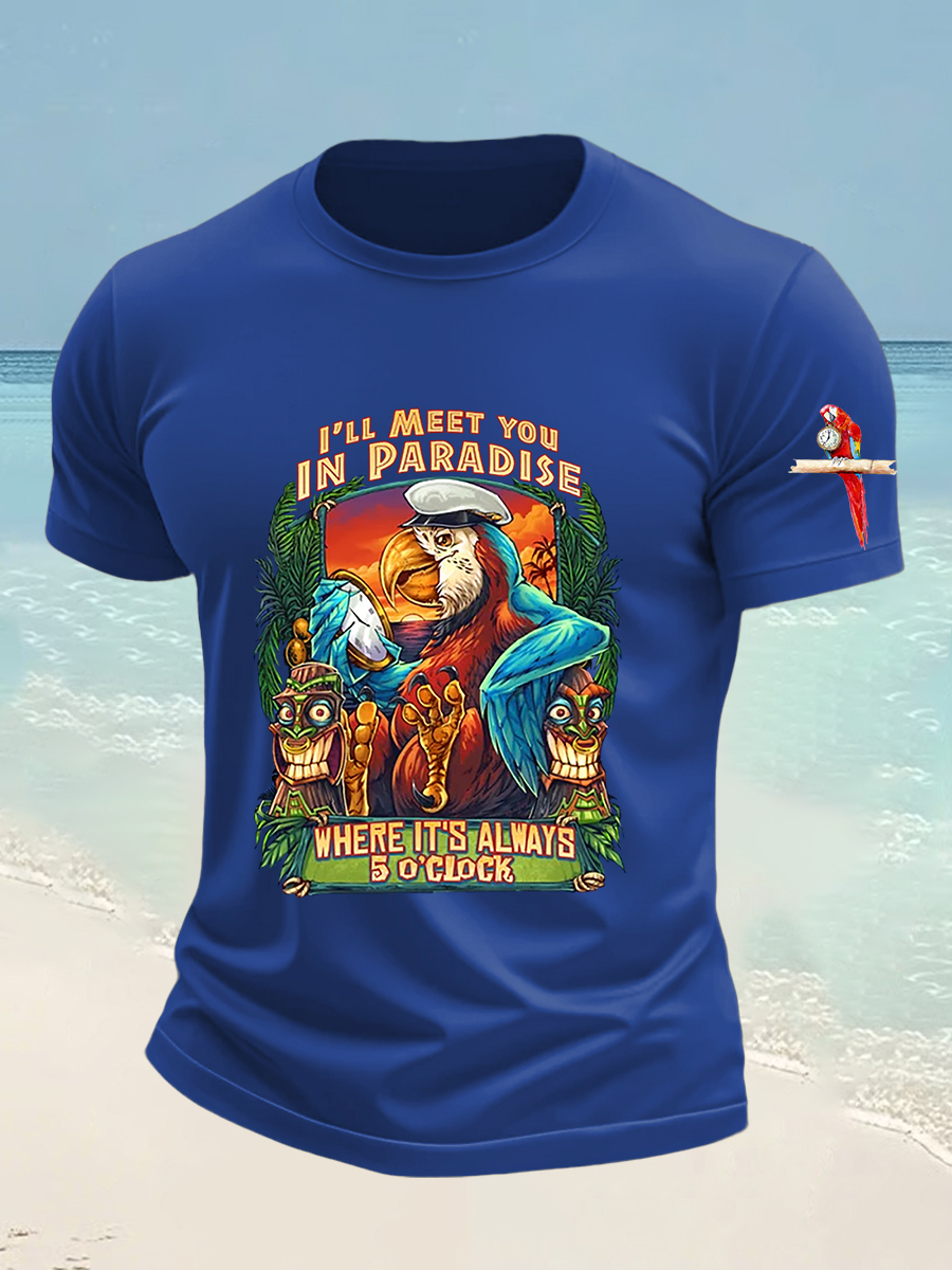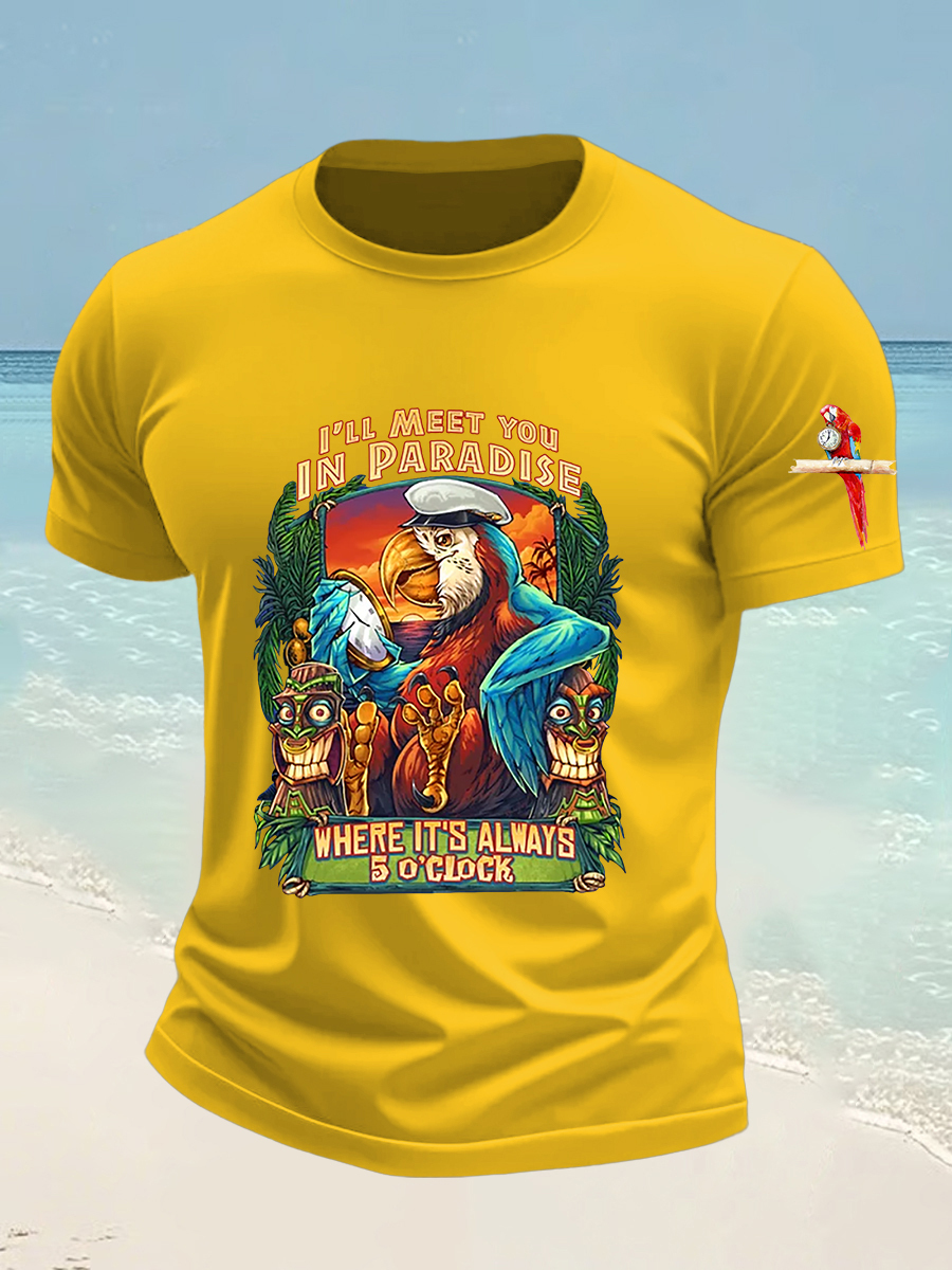 Men's Funny It's 5 O'clock Somewhere Parrot Printed Short Sleeve Tee