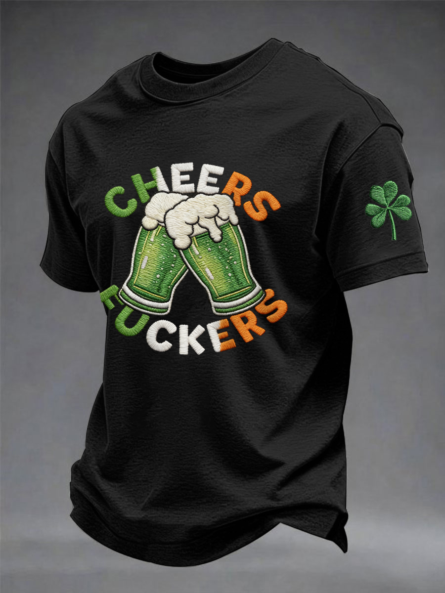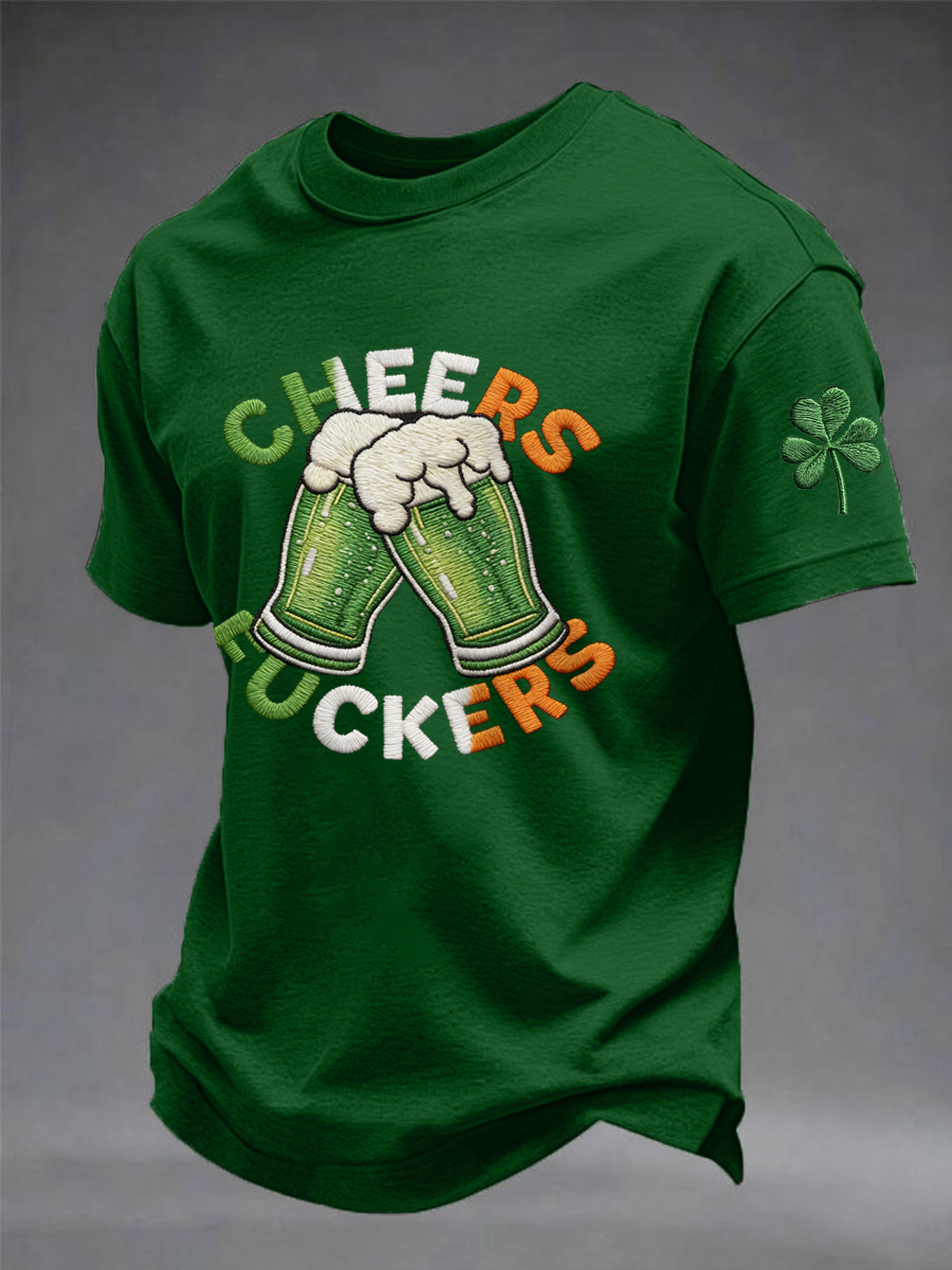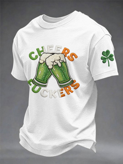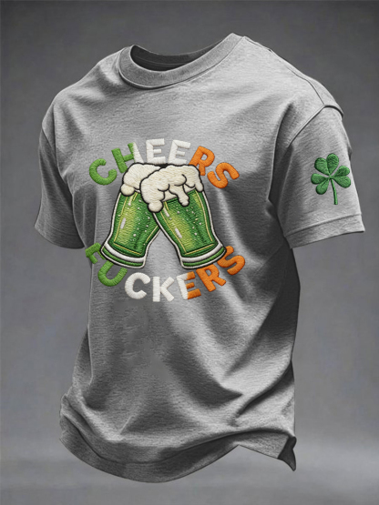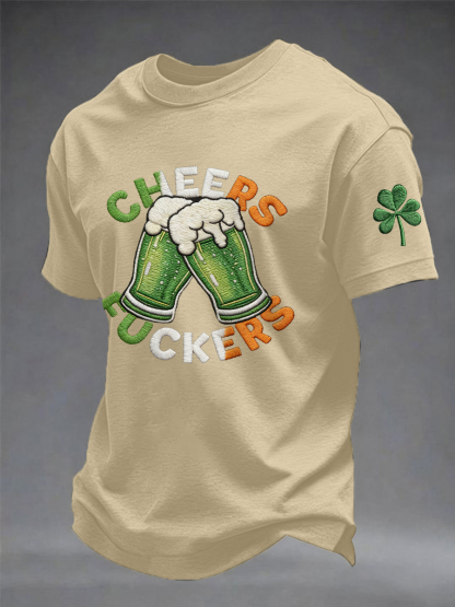 Men's Funny St Patrick's Day Cheers F*ckers Green Beer Shamrock Print Casual Tee