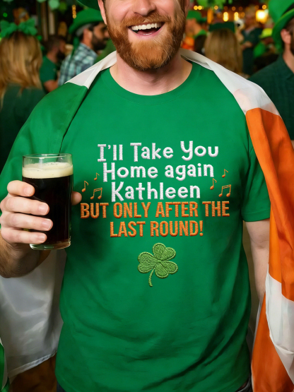 Men's Funny St. Patrick's Day I'll Take You Home Again Kathleen But Only After The Last Round Print Casual Tee