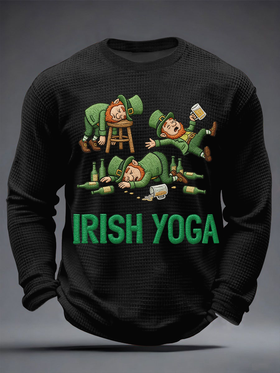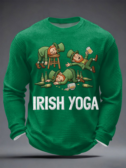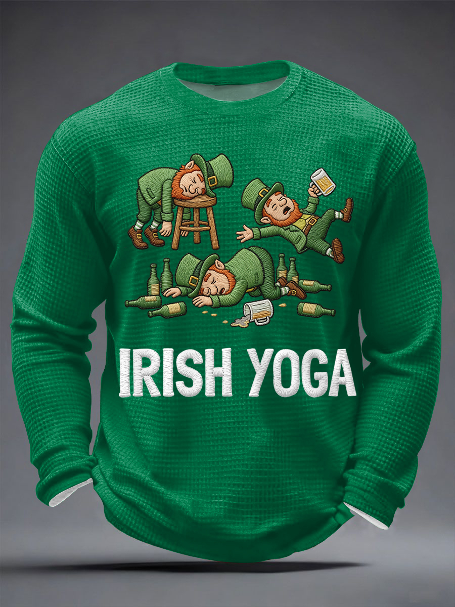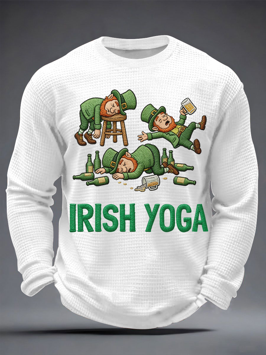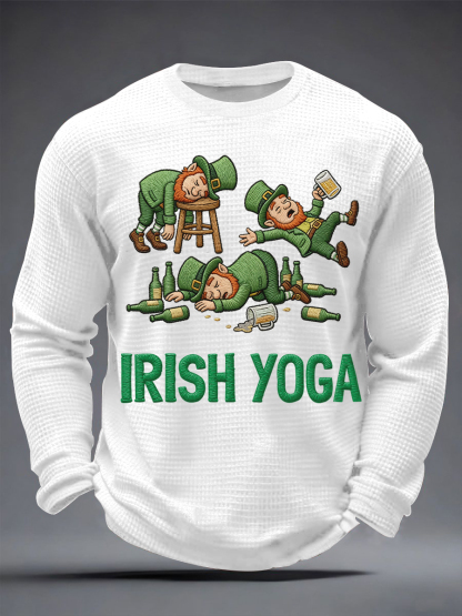 Men's Funny St. Patrick's Day Irish Yoga Print Casual Waffle Long Sleeve T-Shirt