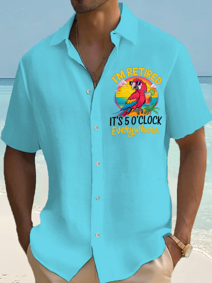 Men's I‘m Retired It‘s 5 O'clock Everywhere Parrot Casual Short Sleeve Shirt