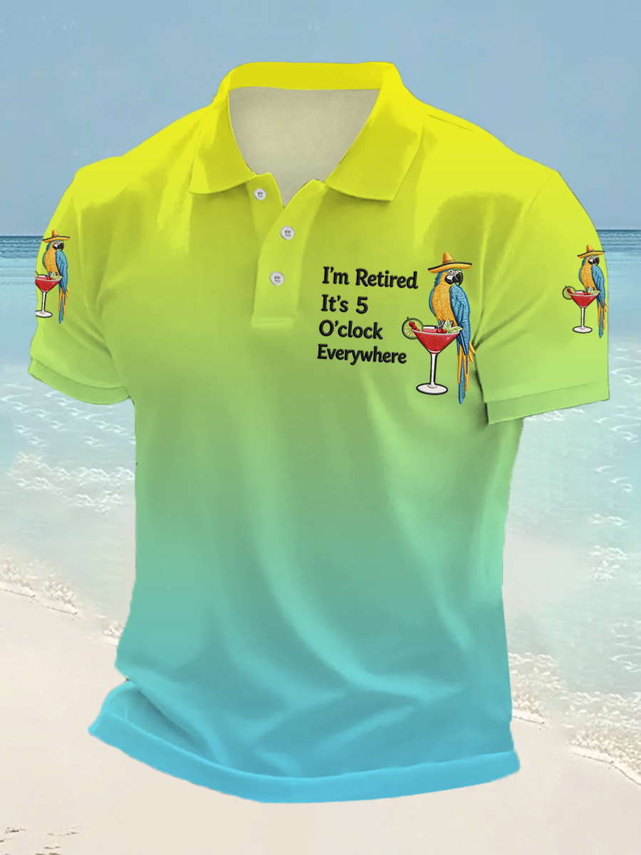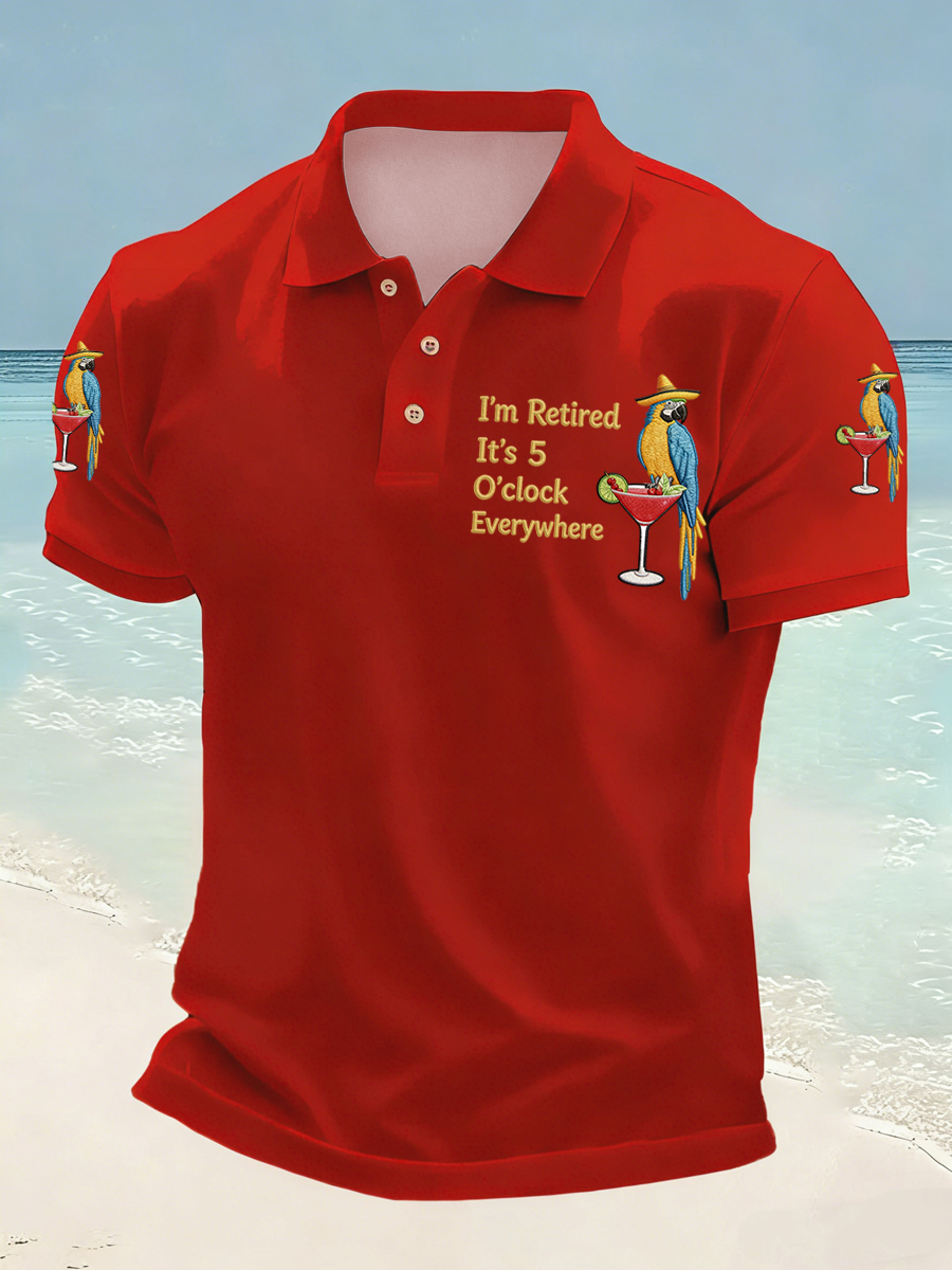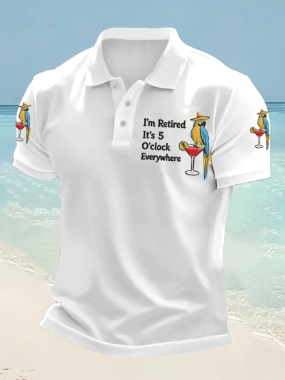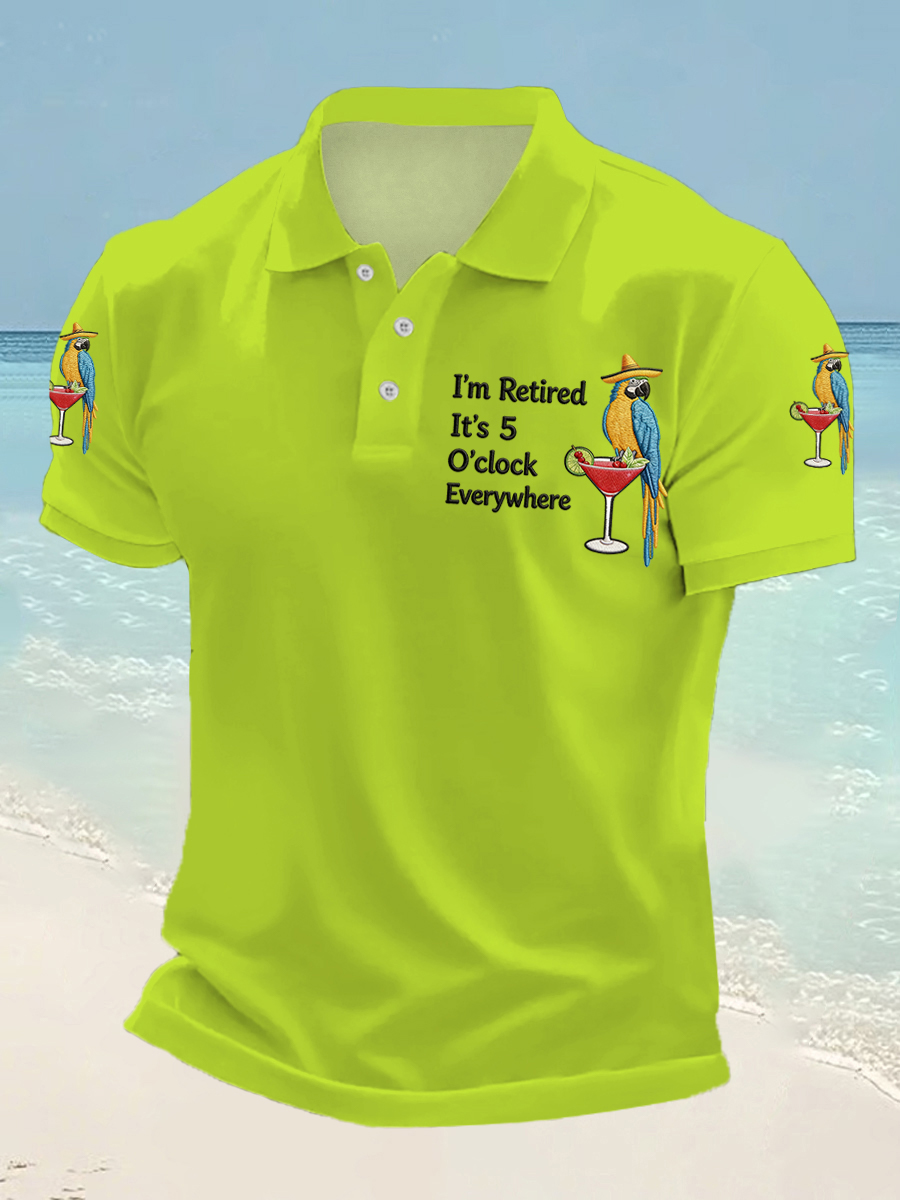Men's I'm Retired It's 5 O'clock Everywhere Parrot Print Casual Polo