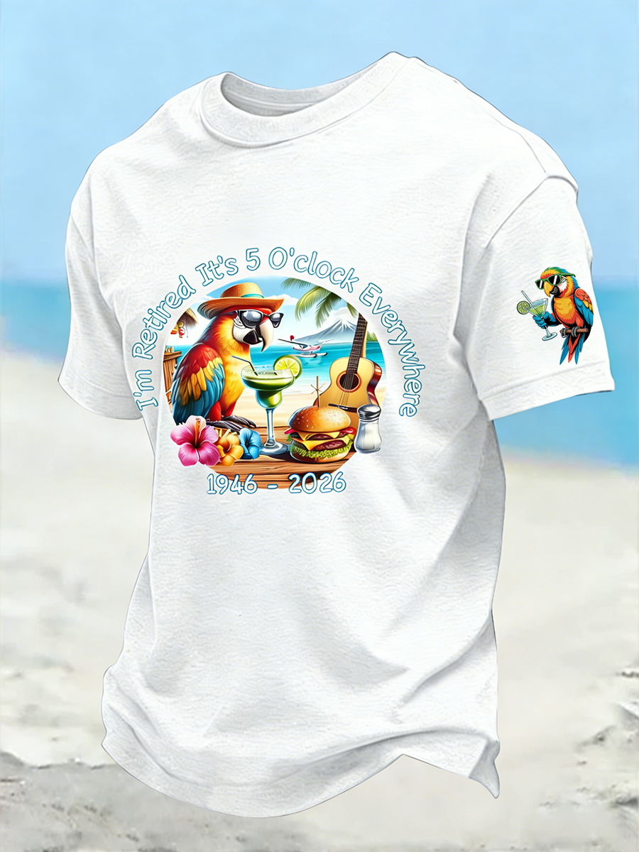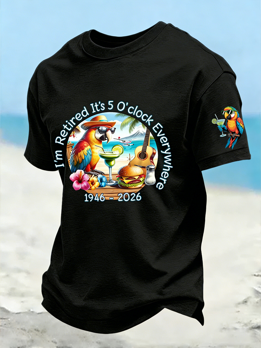 Men's I'm Retired It's 5 O'clock Everywhere Parrot Print Casual Short Sleeve T-Shirt