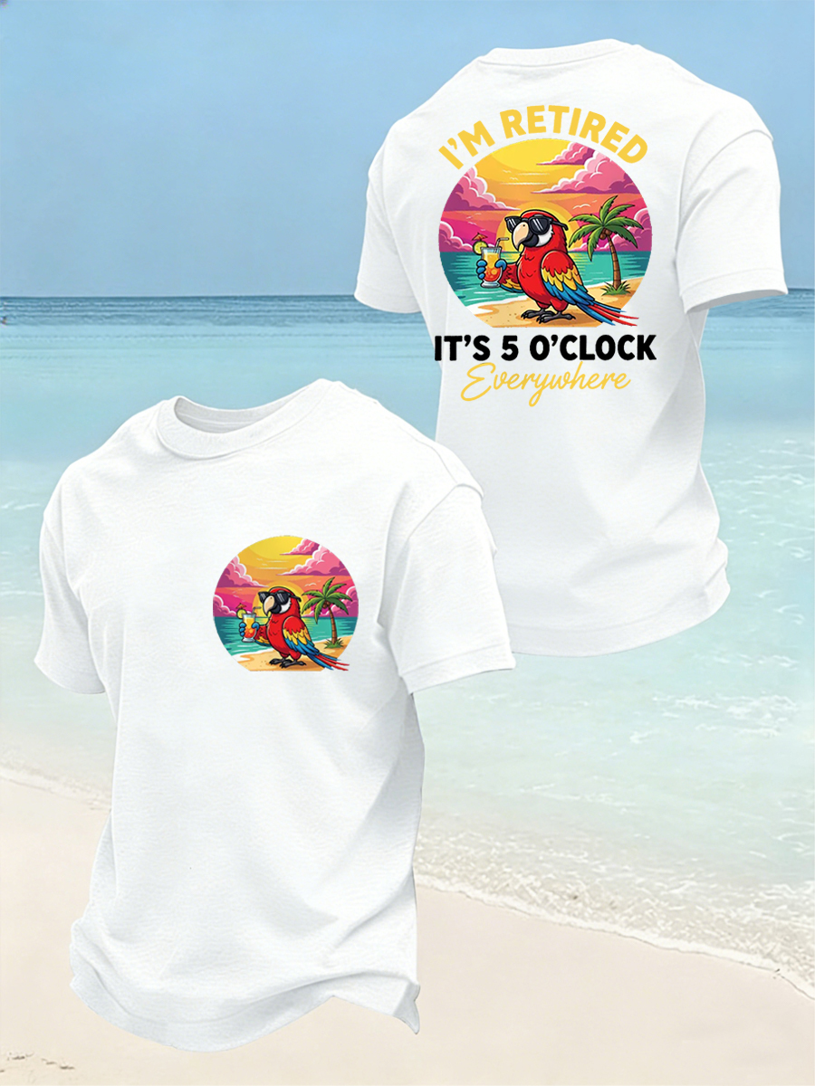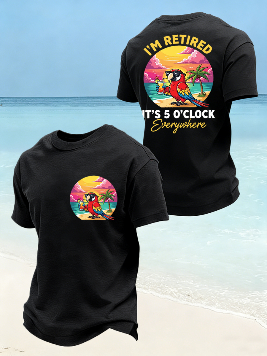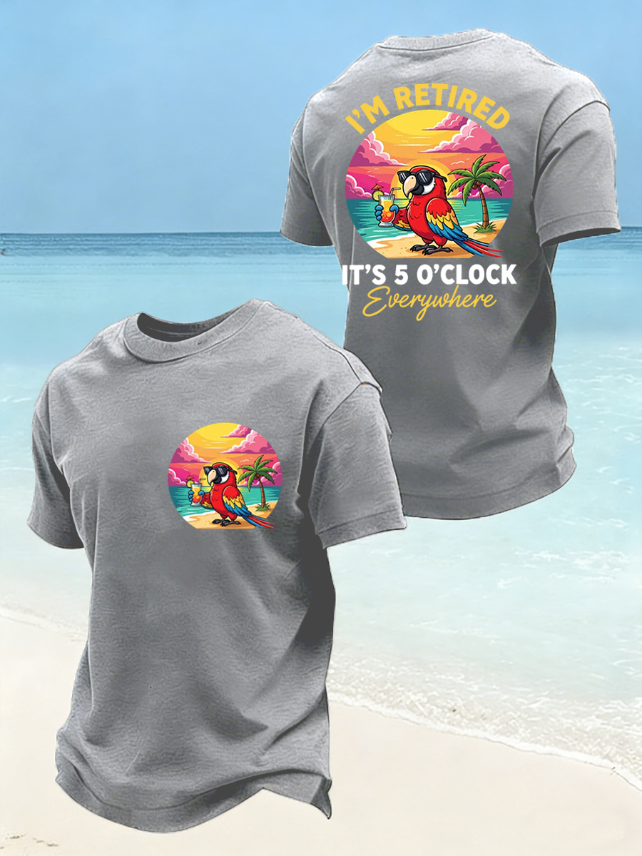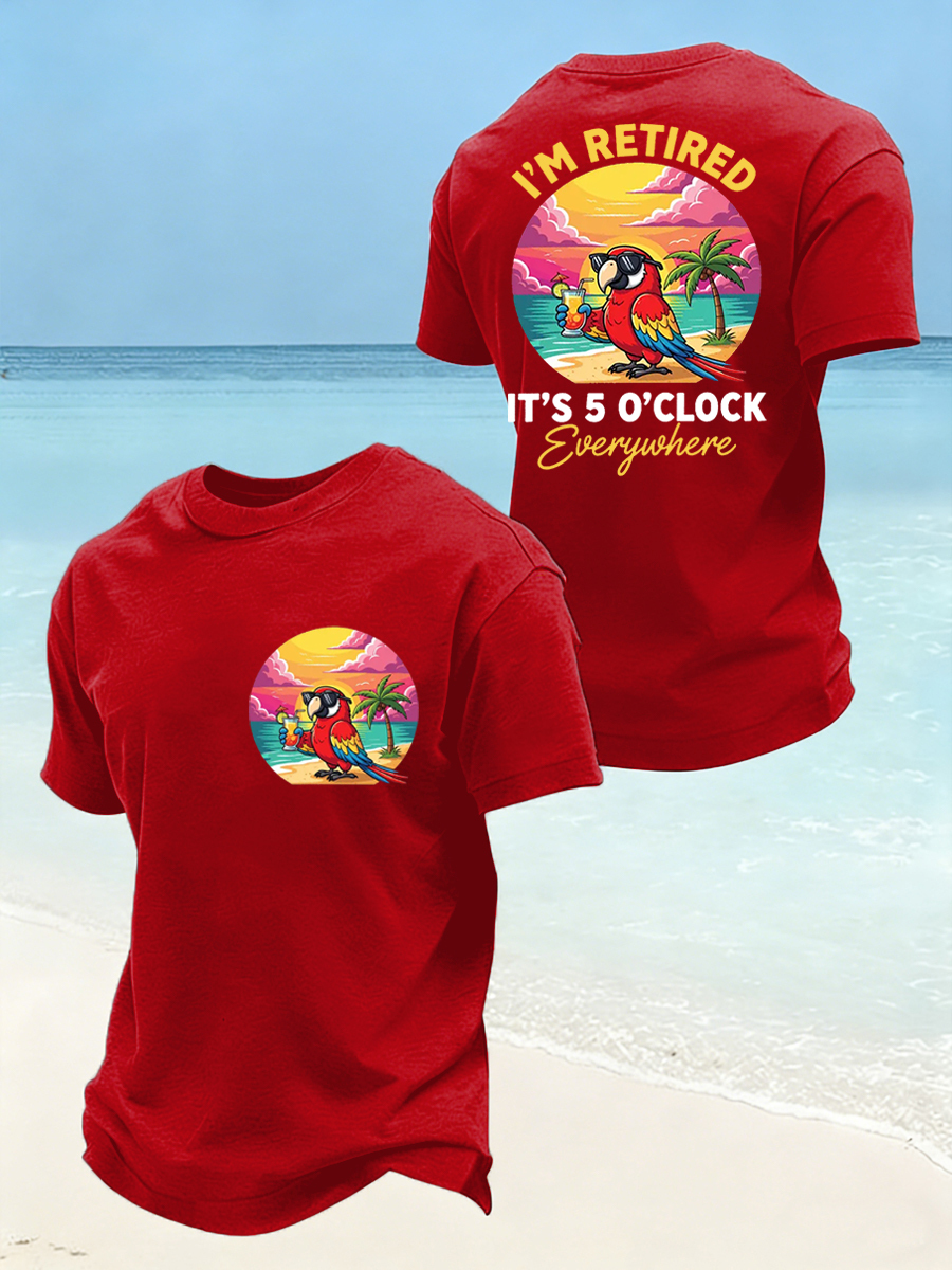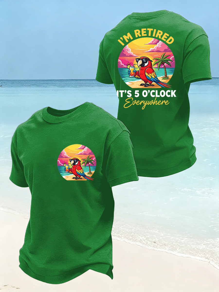 Men's I'm Retired It's 5 O'clock Everywhere Parrot Print Casual Tee