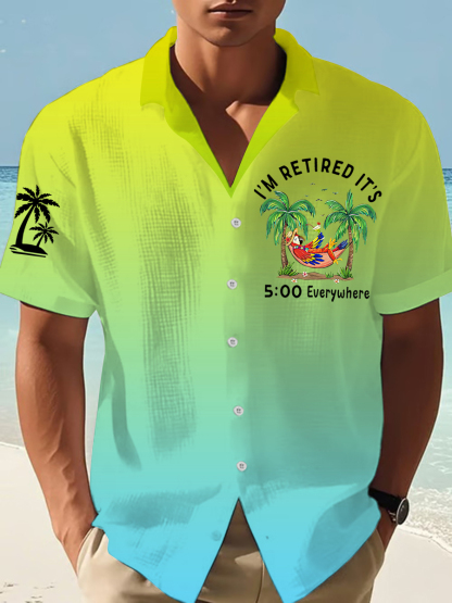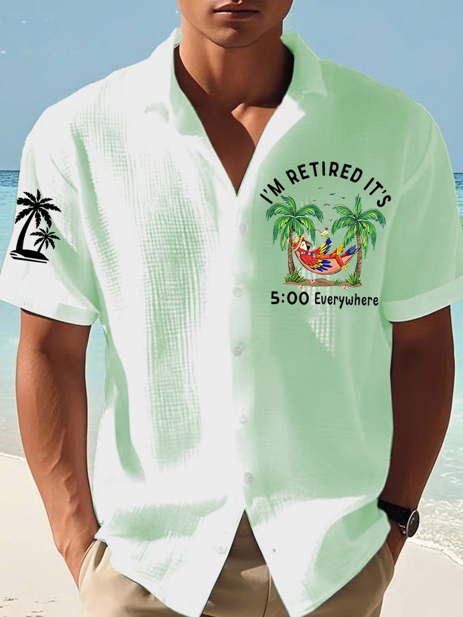 Men's I'm Retired It's 5 O'clock Everywhere Parrot Print Casual Waffle Short-Sleeve Shirt